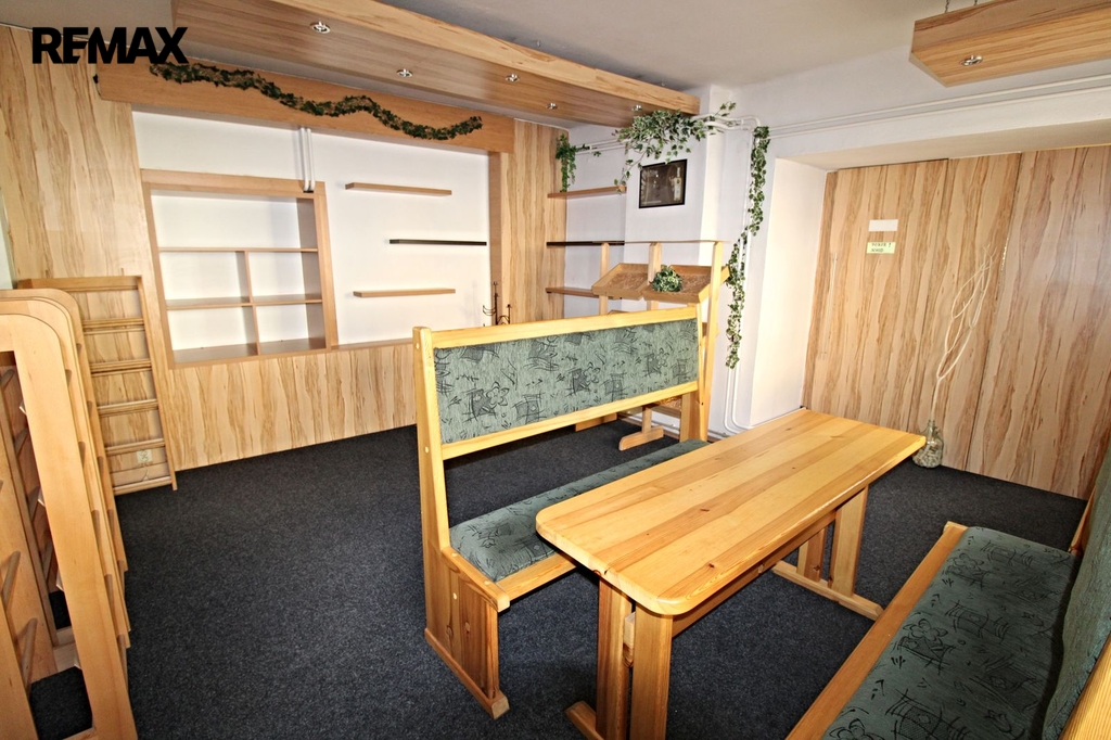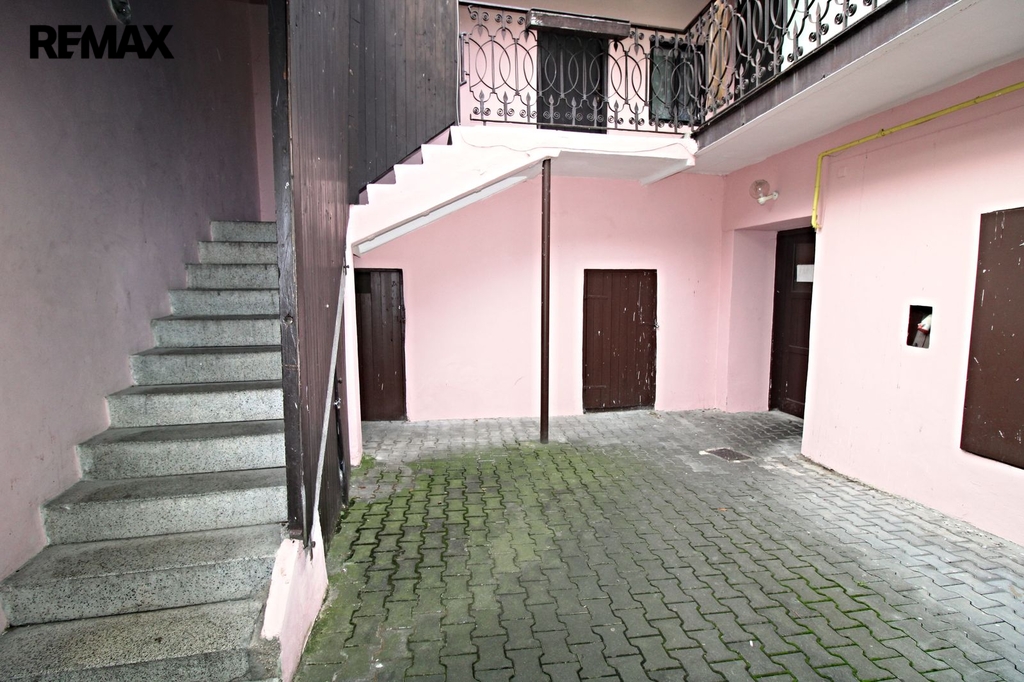 V přízemí se nachází větší prodejna se samostatným vchodem z náměstí 120 m2. V současné době využívaná jako prodejna textilu. Sestává se z prostorné prodejní místnosti, chodby, skladu a sociálního zařízení. Dále se v přízemí se vstupem z boční Linecké ulice nachází další komerční prostory 61 m2, které byly využívány jako vinotéka. Sestávají se ze vstupní přepažené místnosti, kuchyňky, skladu, kanceláře a sociálního zařízení. Vchodem z boční ulice se také vchází průchodem do menšího uzavřeného dvorku odkud je po kamenném venkovním schodišti umožněn přístup do patra na pavlač 15,3 m2, ze které se vchází do místností, sloužících jako prádelna se sušárnou 19,3 m2 a do bytové jednotky o dispozici 2+1, 60 m2. Dále na pavlač navazuje chodba 30,2 m2 odkud se samostatně vstupuje do šesti pokojů, sloužících k soukromému ubytování. Každý pokoj má vlastní sociální zařízení včetně společné kuchyňky 2,7 m2 s úklidovou komorou 0,95 m2 a skladem 1,26 m2. Rozměry samostatných pokojů se sociálním zařízením jsou 21 m2, 29,5 m2, 24 m2, 22,5 m2, 22,7 m2 a 17 m2. V 1. patře je místnost 3 m2 pro umístění plynového kotle. Recepce sloužící k ubytování se nachází v přízemí v průchodu. Z Linecké ulice se také vchází do samostatné místnosti 11,7 m2, kterou lze využít jako menší kancelář či sklad.