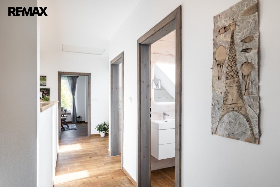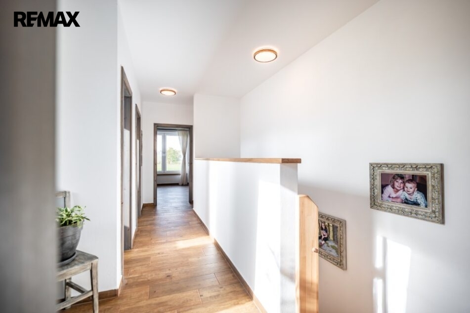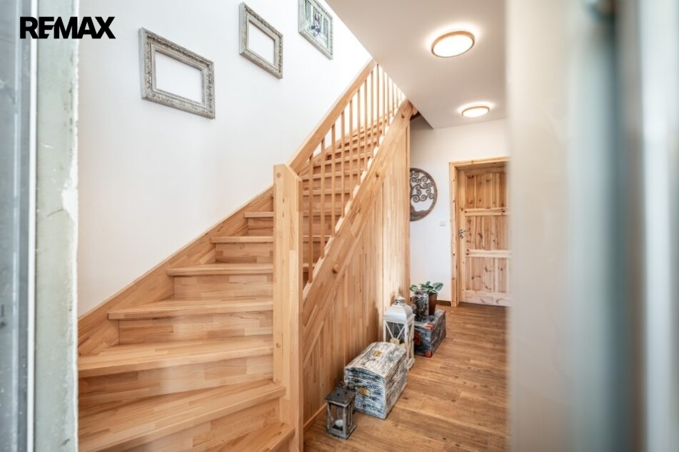 Interiér domu je kompletně hotový, velmi vkusně zařízený včetně moderní kuchyně a je laděn do harmonického celku, každý detail je součástí promyšlené koncepce příjemného bydlení.