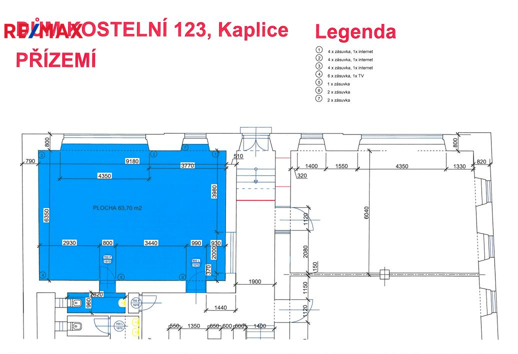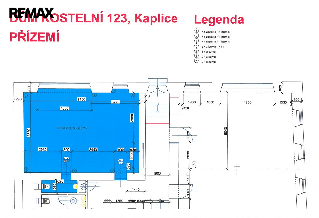 Prostory o celkové výměře 63,70 m2 se nachází v přízemí dvoupatrové budovy v ulici Kostelní č.p. 123 a svou polohou v těsné blízkosti náměstí nabízí široké možnosti pro podnikatelskou příležitost. Jedná se o prostornou prosvětlenou místnost s výlohou, přizpůsobenou jak ke kancelářským účelům tak pro zřízení obchodních prostor, prodejen. Při kompletní rekonstrukci celého objektu a jednotlivých místností bylo vše důkladně promyšleno a zrealizováno. U nabízeného prostoru je vše připraveno k nainstalování zabezpečovacího systému. Součástí prostoru je navazující sociální zařízení.