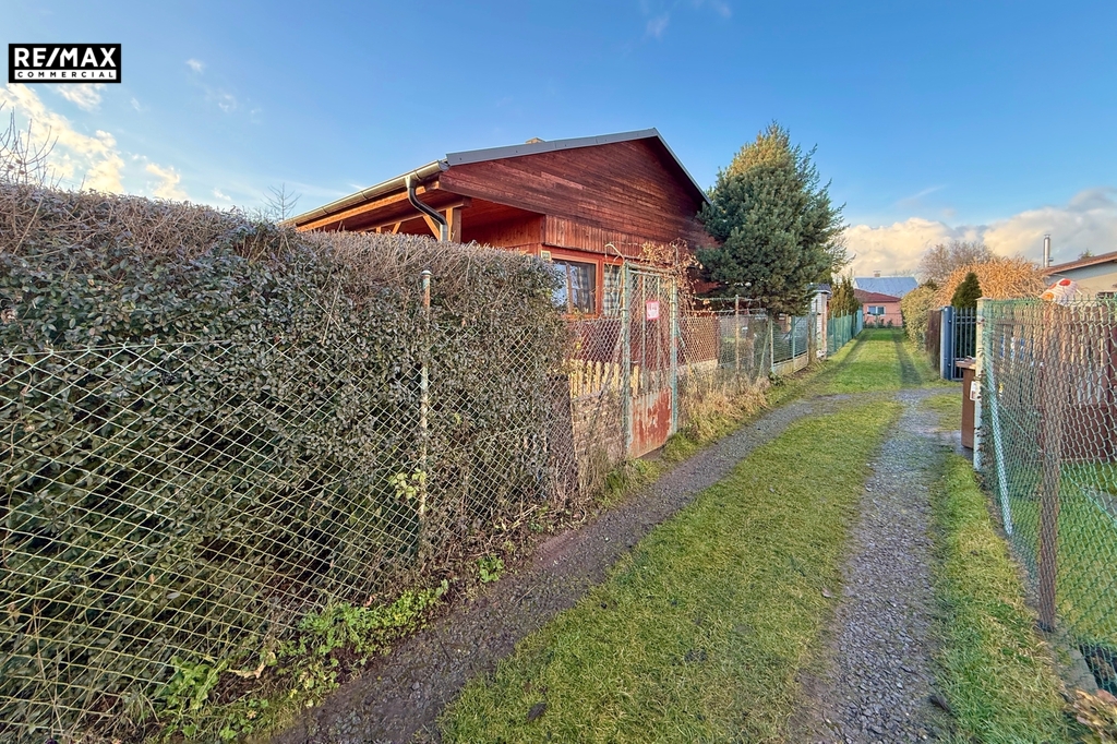 Na zahradě o rozloze 407 m² se nachází venkovní kryté posezení a dílna (11 m²). Vzrostlá zeleň vytváří příjemné soukromí a klidné prostředí. Příjezd k chatě je po asfaltové komunikaci, posledních 30 metrů tvoří nezpevněná cesta.