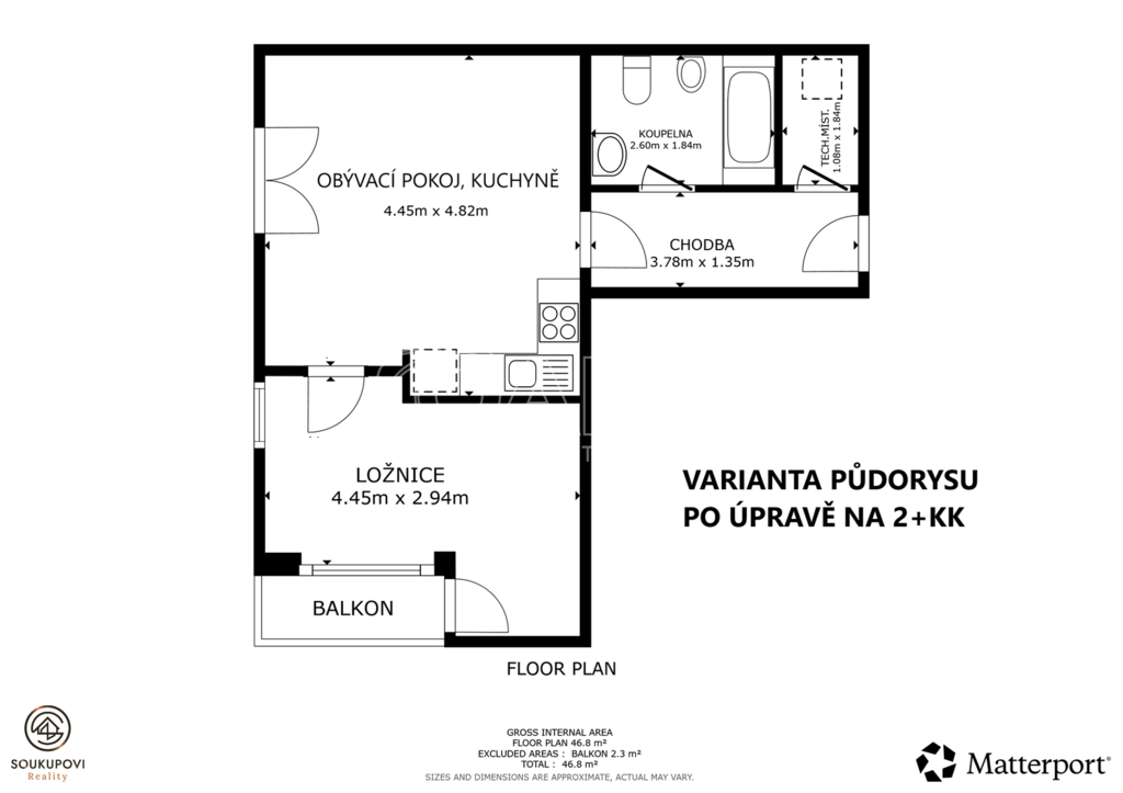 | Dispozice/podlahová plocha: | 1+kk/48 m² |