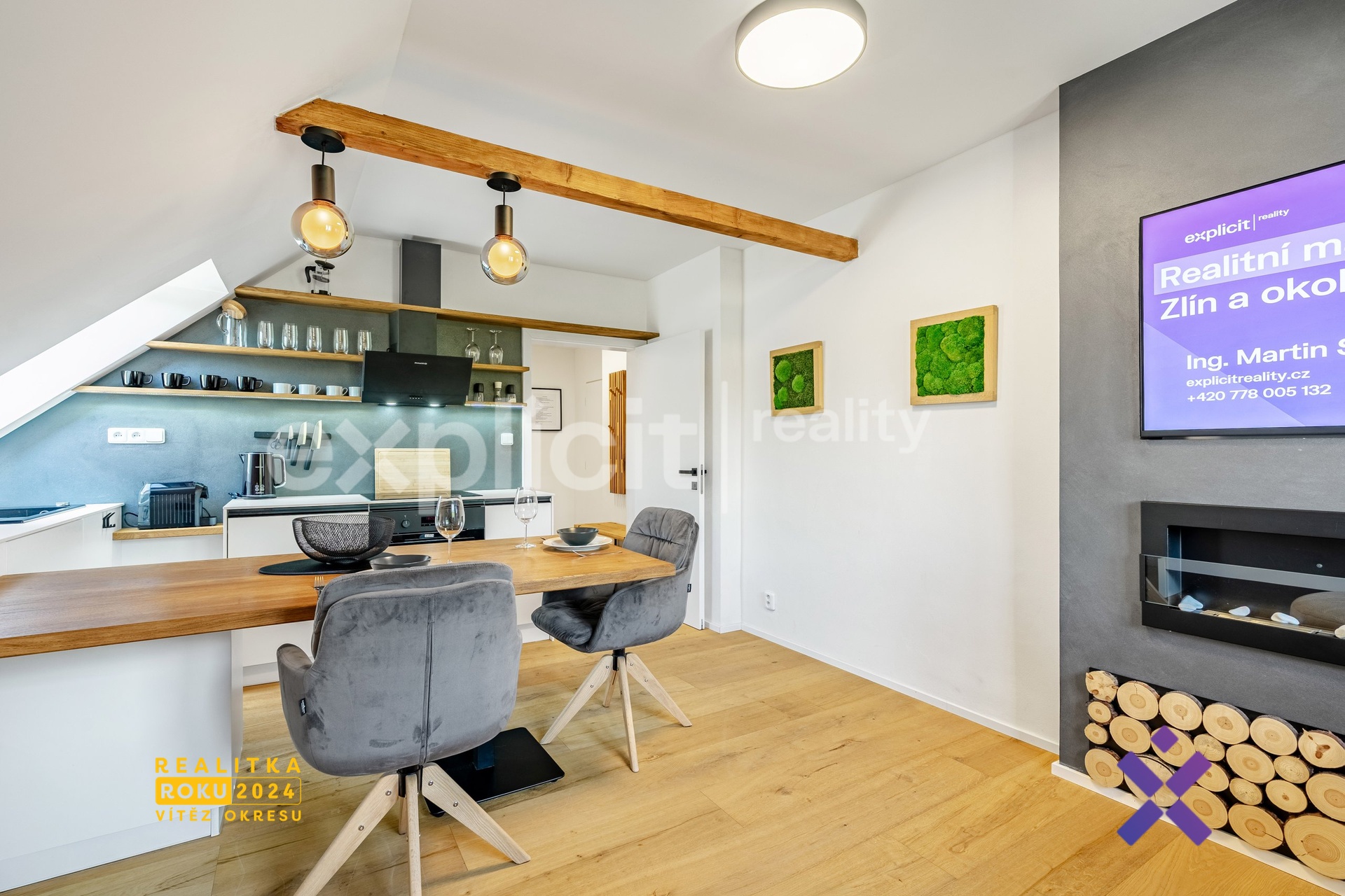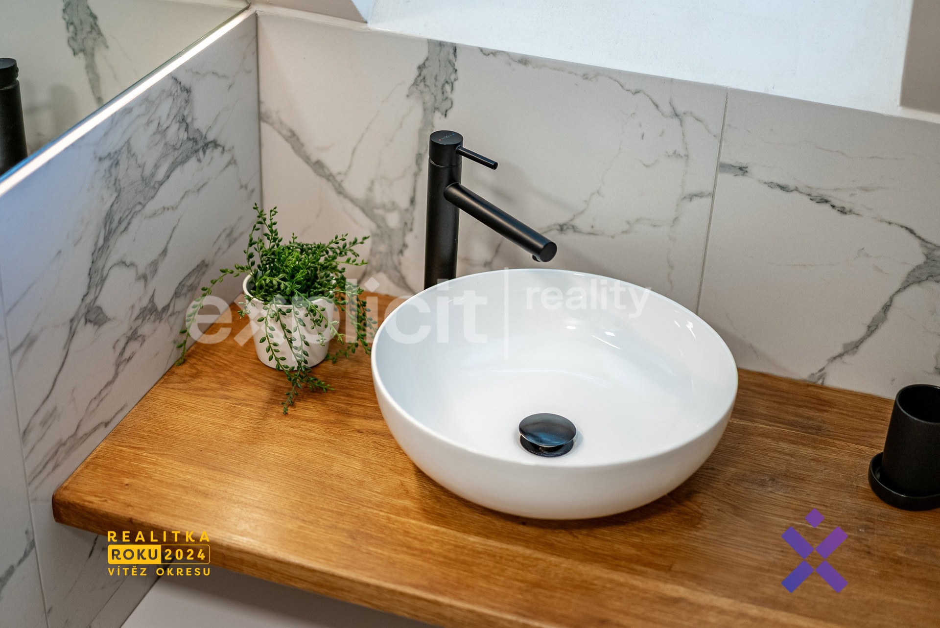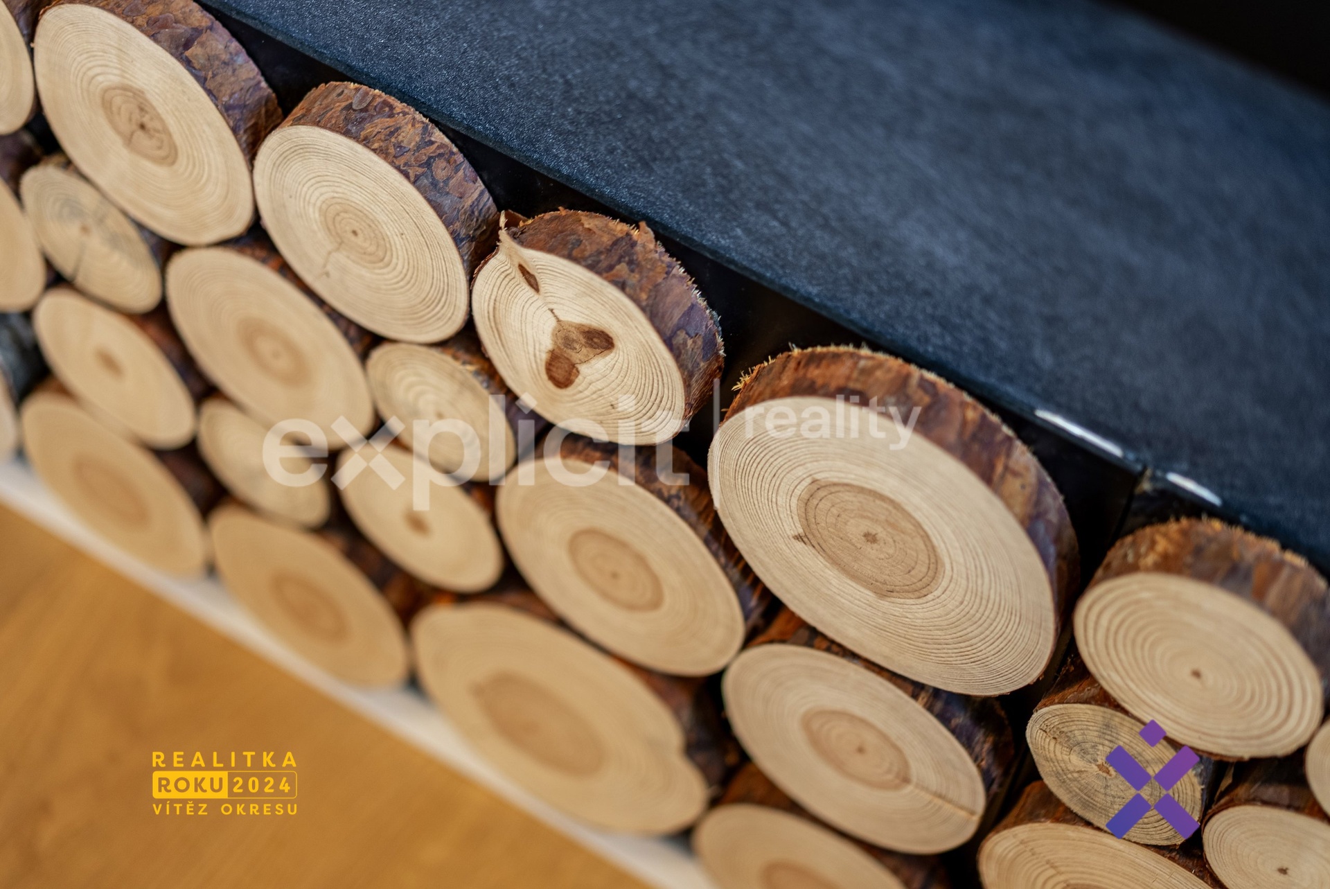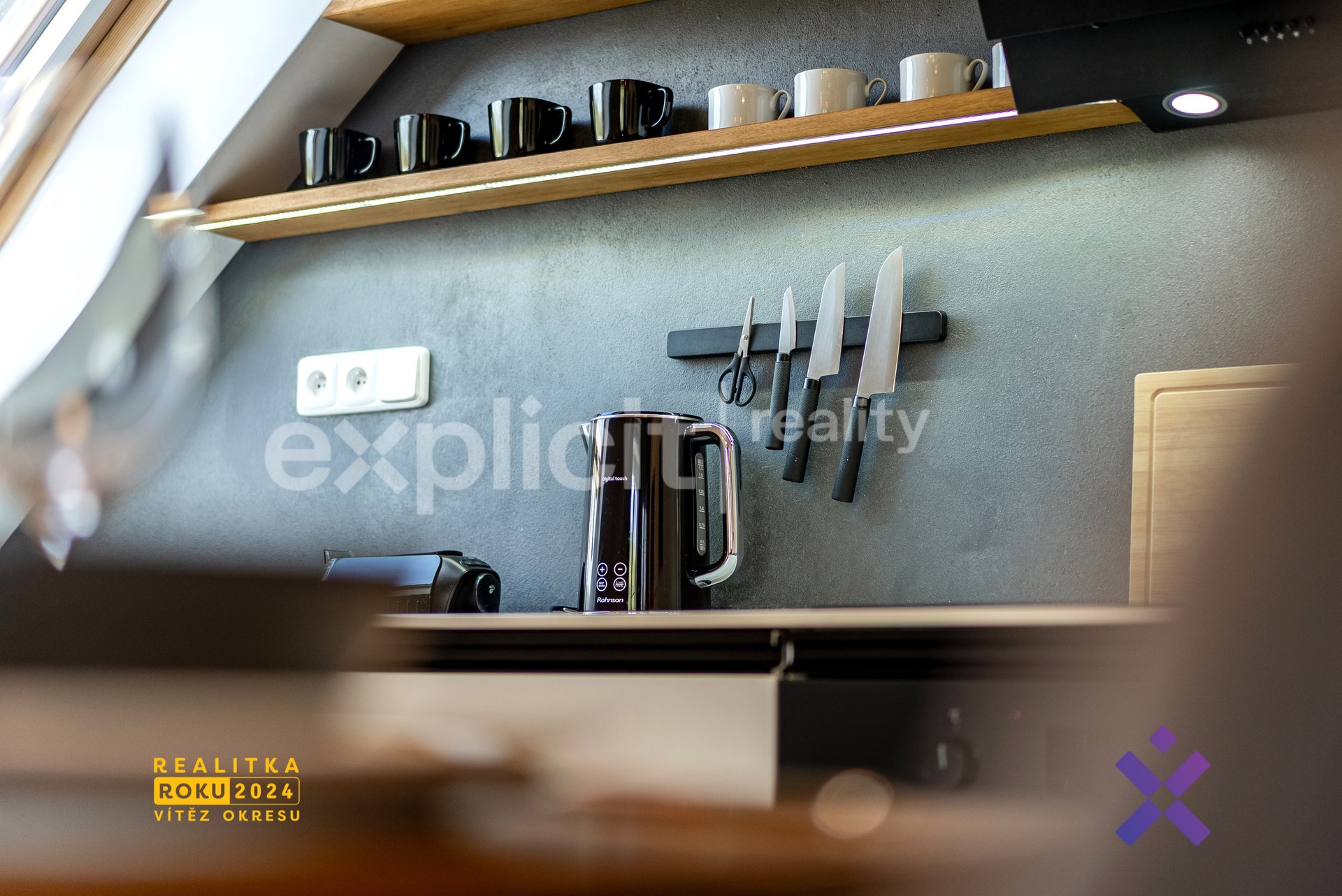Interiér byl navržen s důrazem na moderní design a kvalitní provedení. Při rekonstrukci byly použity vysoce kvalitní materiály a celý apartmán je ve výborném, udržovaném stavu. Podlaha je vyrobena z masivního dubového dřeva. Dům, ve kterém se apartmán nachází, prošel kompletní rekonstrukcí před dvěma lety, je zateplený a společné prostory jsou ve výborném stavu díky aktivnímu fondu oprav.