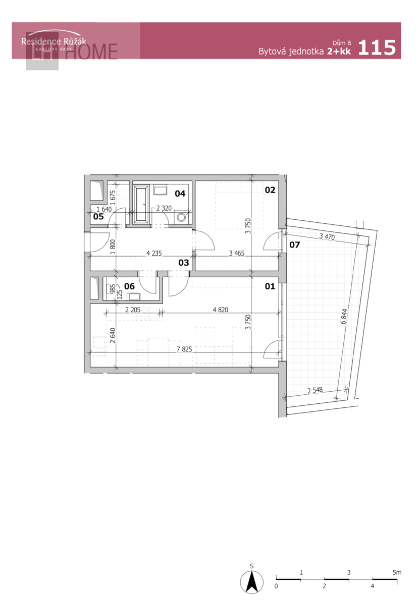 Byt 2+kk, 60,64 m2 + terasa 21,43 m2, Residence Růžák budova B