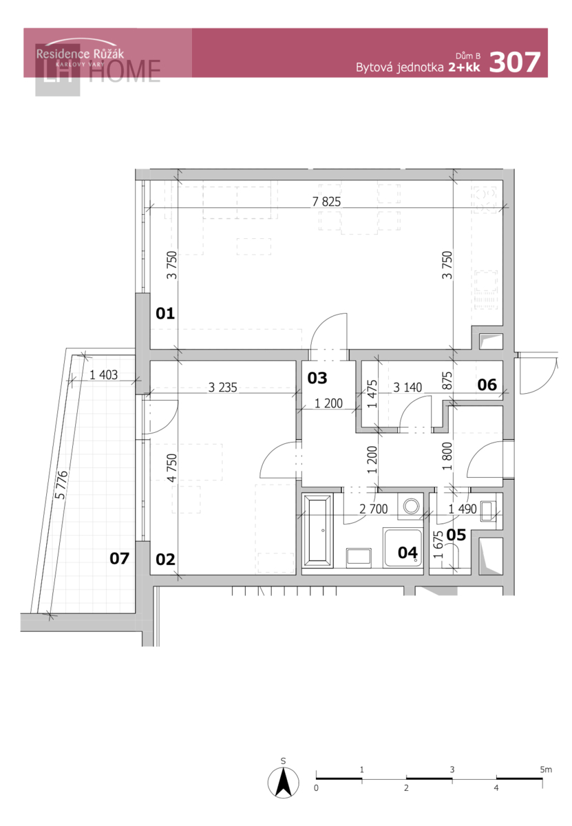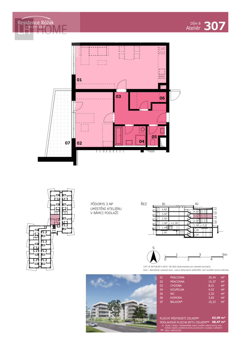 Byt 2+kk, 68,47 m2 + balkón 10,23 m2, Residence Růžák budova B