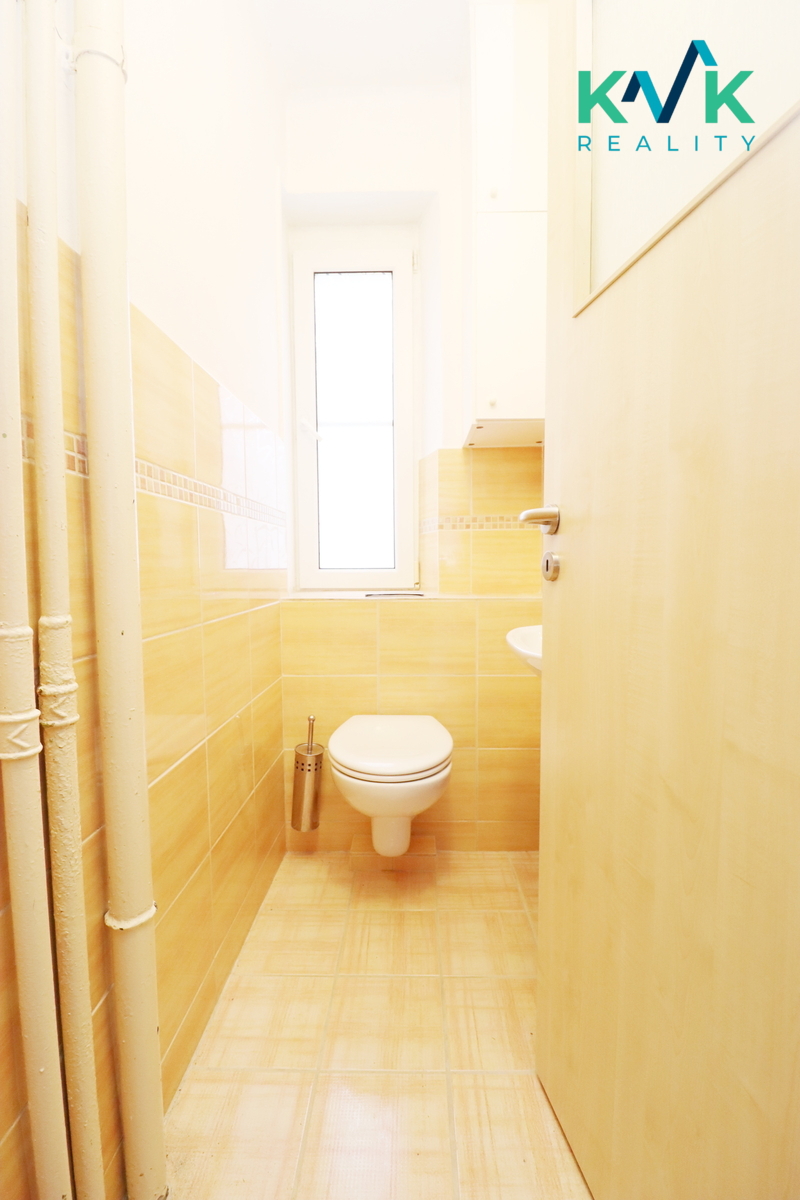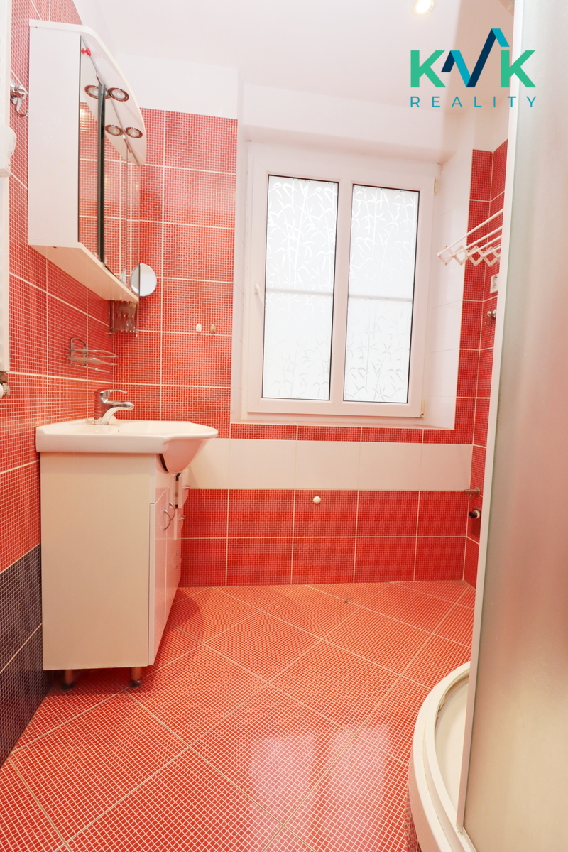 Koupelna je se sprchovým koutem a prostorem pro pračku, toaleta je samostatná.