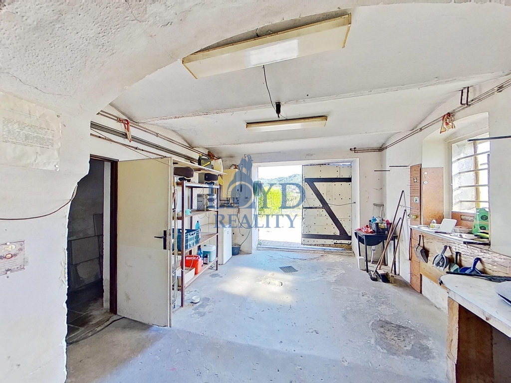 Suterén – garáž pro dva vozy, dílna (možno přebudovat na garáž), sklepy