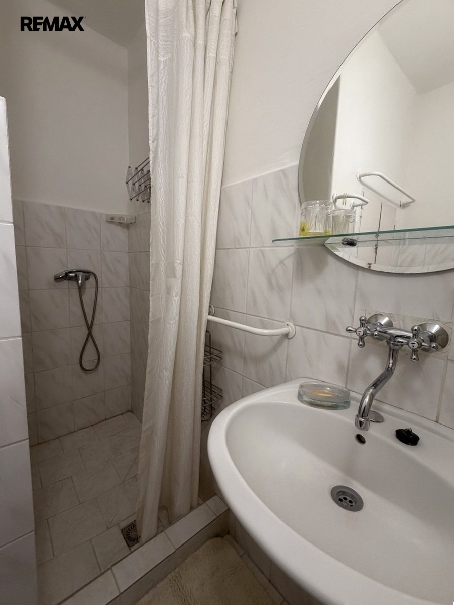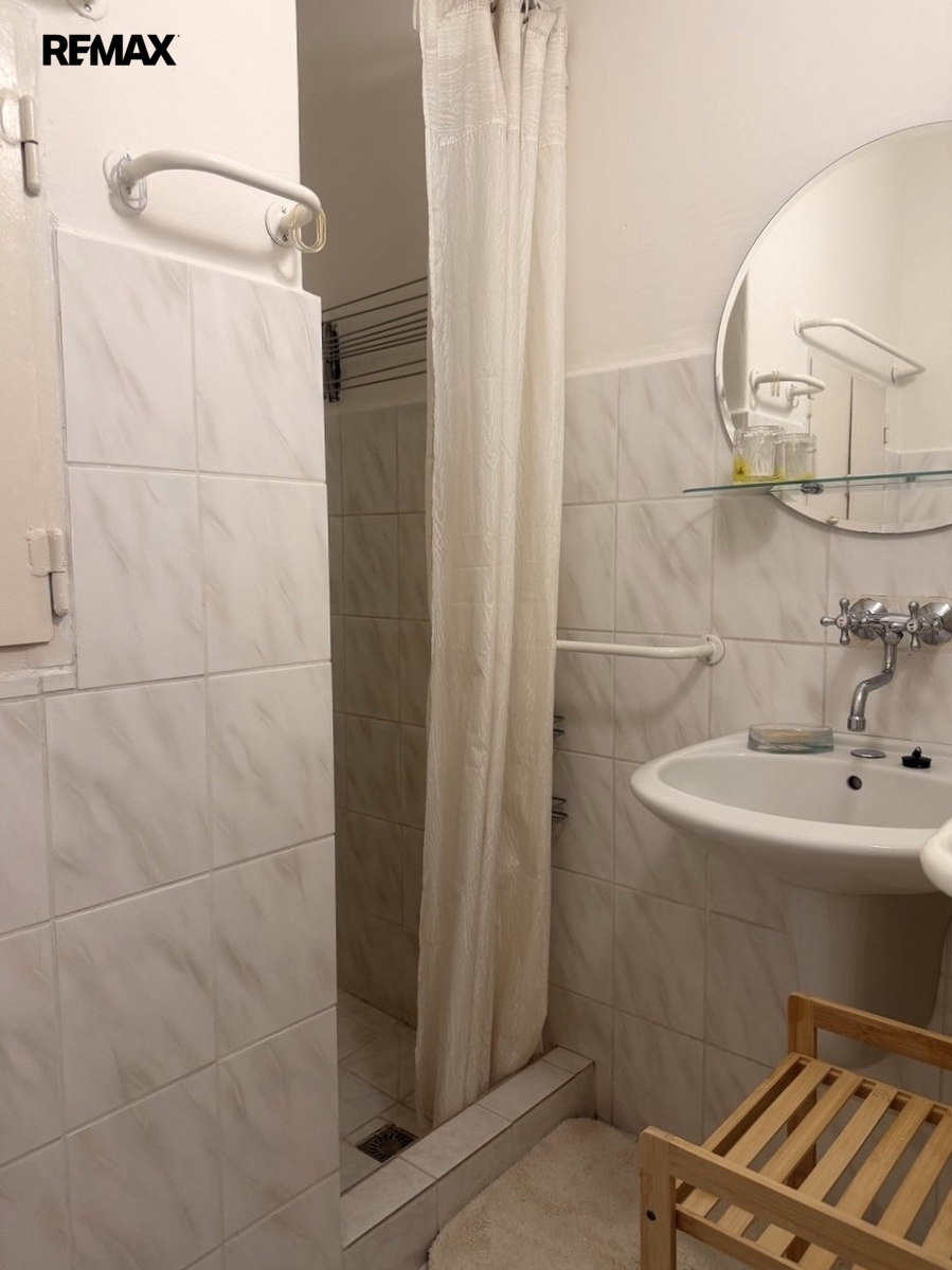 Prakticky uspořádaný obytný prostor s kuchyňským koutem nabízí dostatek místa pro pohodlný každodenní život. Součástí bytu je koupelna se sprchovým koutem a toaletou. K bytu patří sklep.