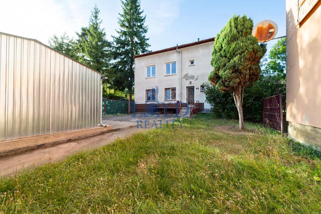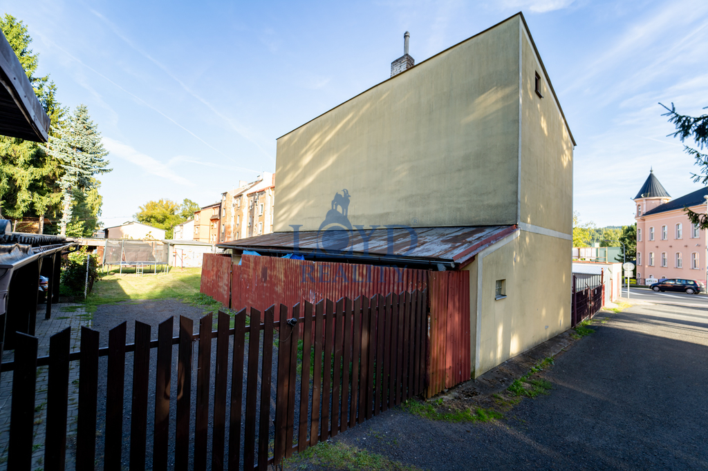 Na oploceném pozemku dvě garáže, zděná 5,6 x 6,0 metru a plechová 4,0 x 6,0 metru. Na ploše před domem parkování pro 3 vozy.