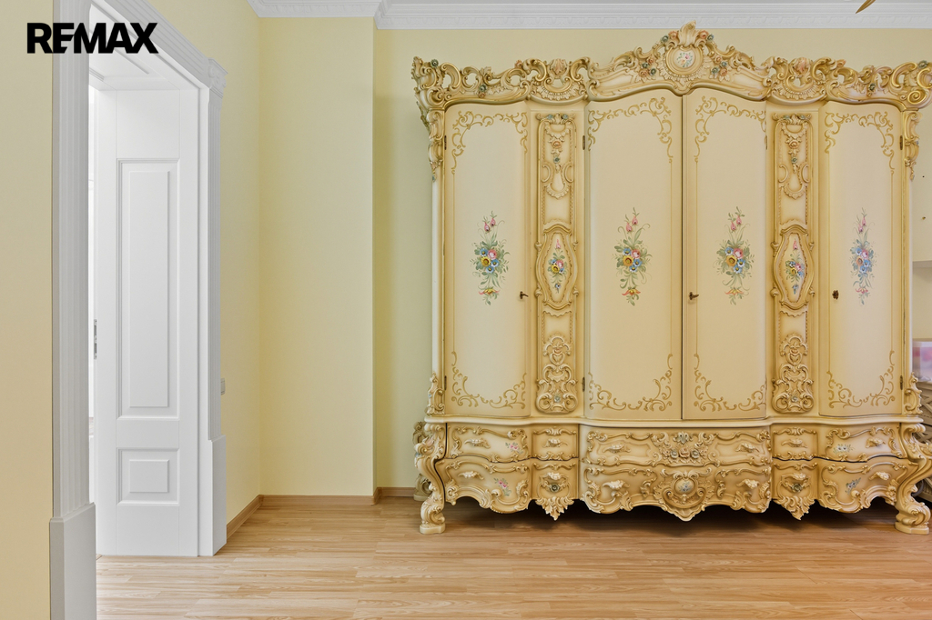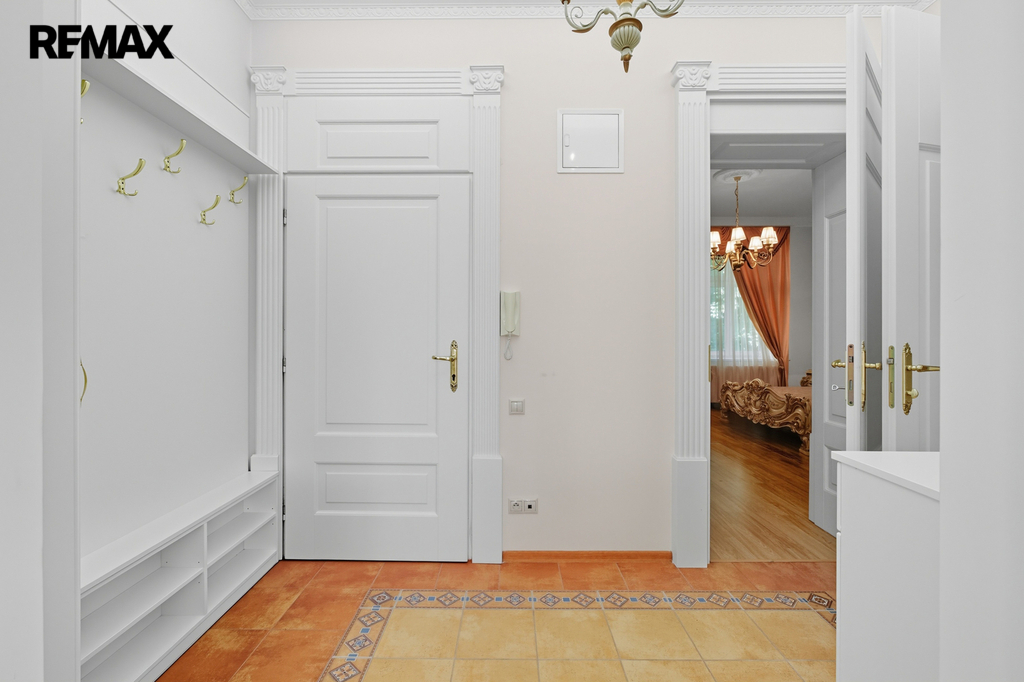 - Vysoké stropy, štukové lišty, dekorativní sloupy a nástěnné rámy