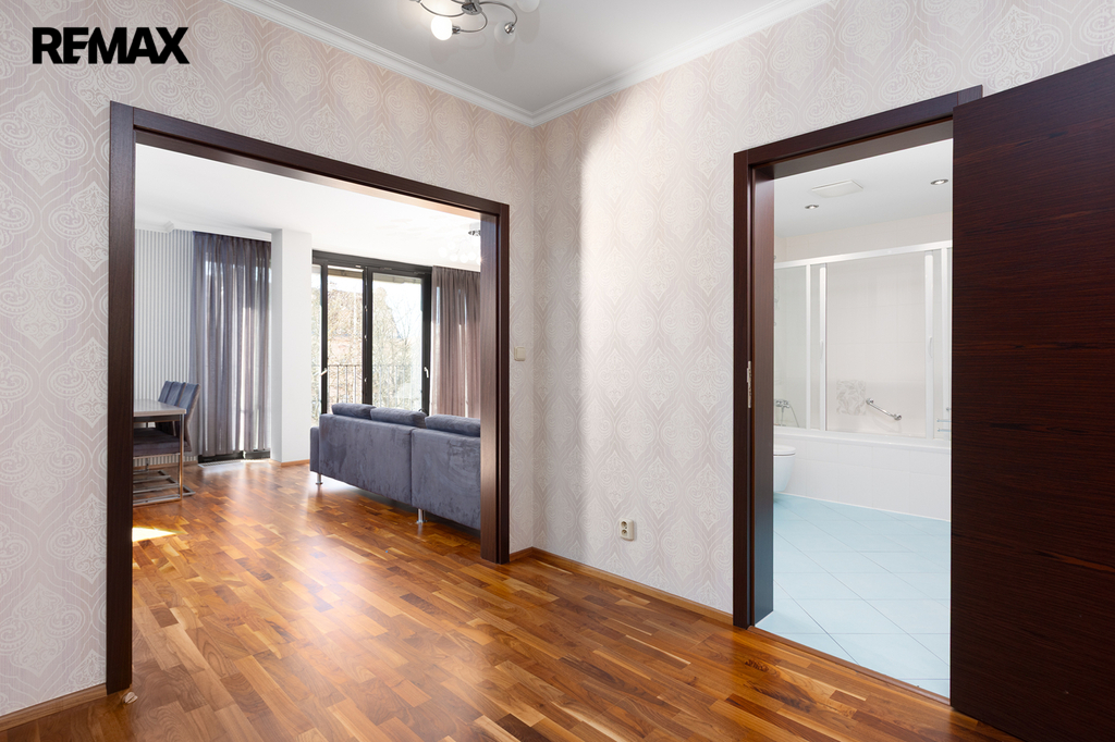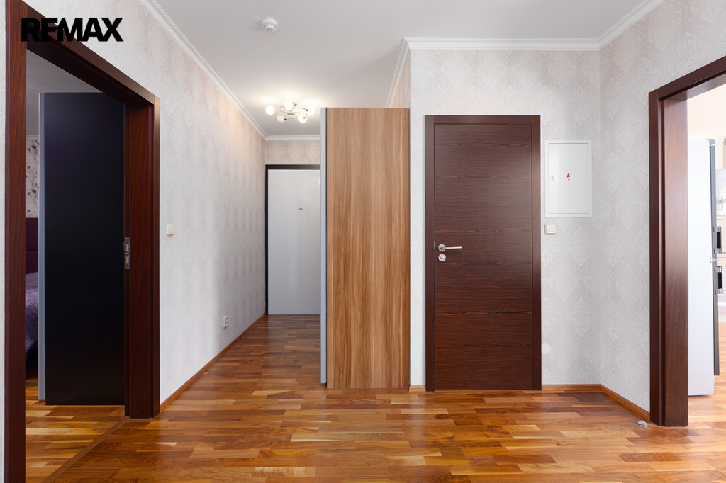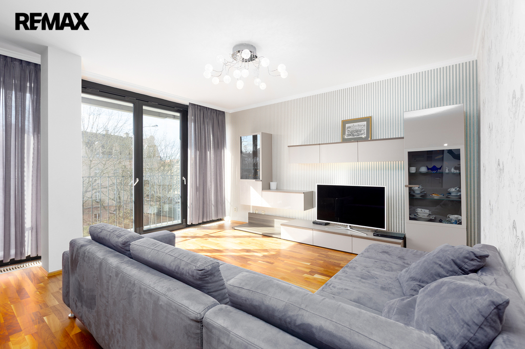 Byt se nachází v novostavbě z roku 2010 a nabízí moderní interiér s kvalitními materiály. Dominantou bytu je německá kuchyňská linka a nábytek. Podlahy pokrývá kvalitní parkety, kteří dodává interiéru útulnou atmosféru. Díky francouzským oknům je byt krásně prosvětlený a nabízí úžasný výhled. Pro ještě větší komfort jsou okna vybavena žaluziemi, které chrání byt před přehříváním a umožňují regulovat množství denního světla podle potřeby.