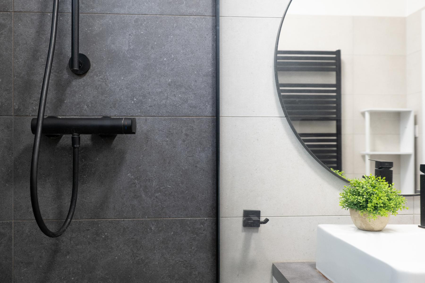 Interiér bytu byl realizován před 4 lety s důrazem na detail, funkčnost a estetiku. Dominantou je velkorysý obývací prostor s kuchyňským koutem, který je přirozeně oddělen designovým ostrůvkem ideální místo pro setkávání rodiny i přátel. Kuchyňská linka je vyrobena na míru a doplněna vestavěnými skříněmi, které zajišťují dostatek úložného prostoru.
