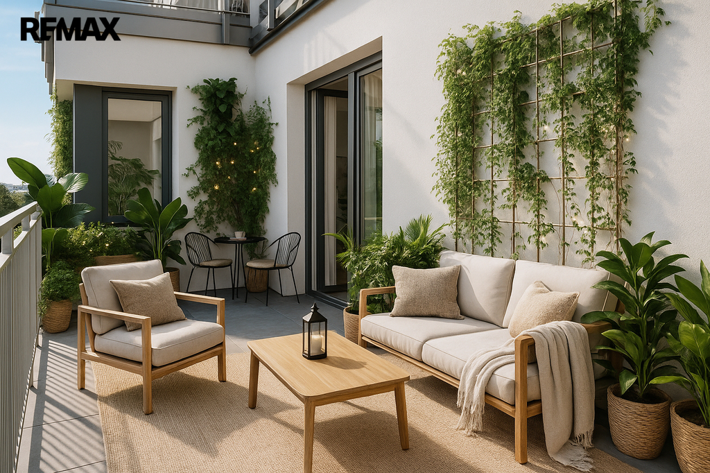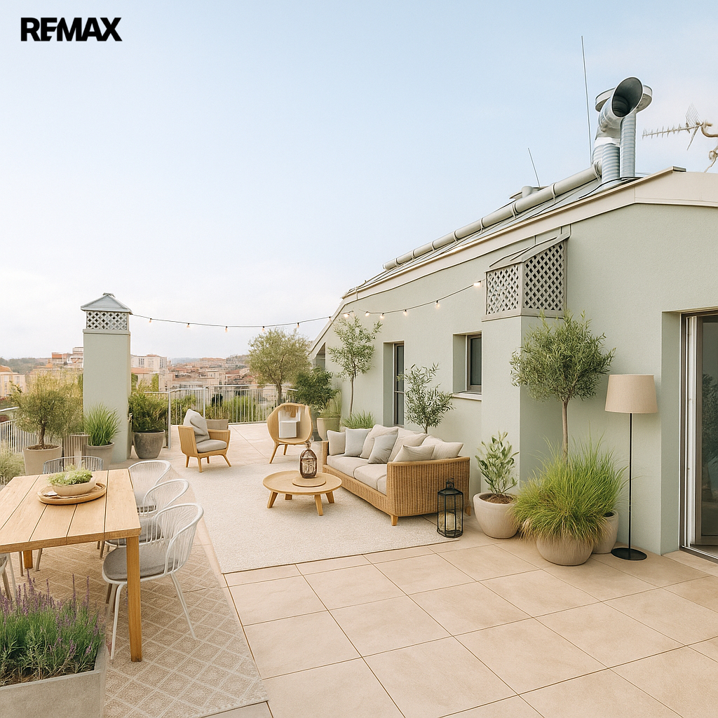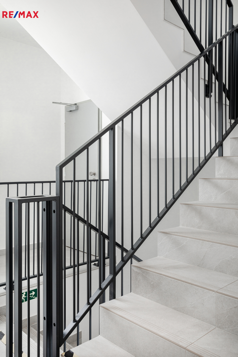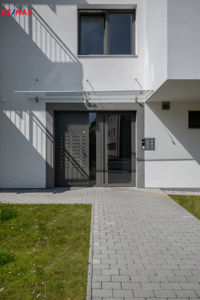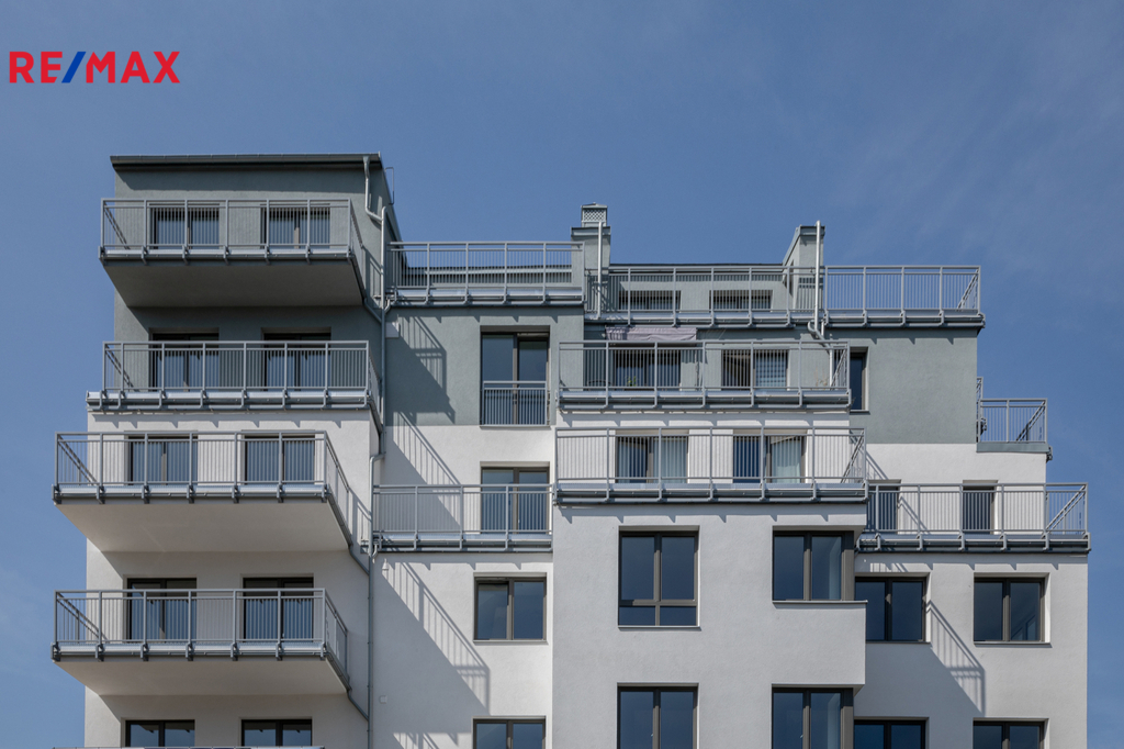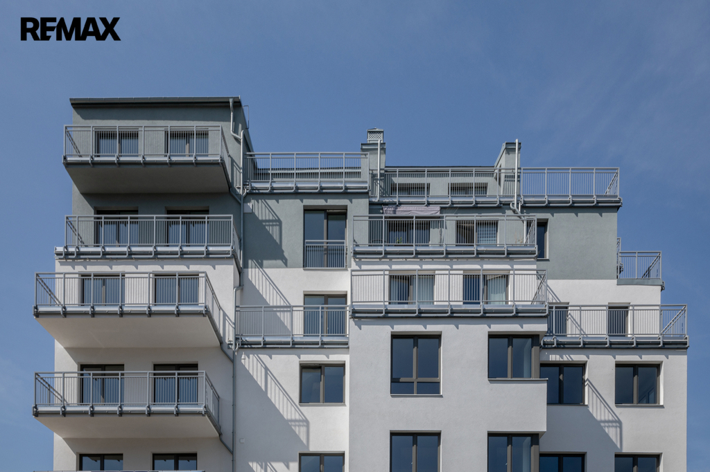 Byt disponuje dvěma terasami (31,6 m² a 22,3 m²), sklepní kójí (5,3 m²) a možností dokoupení parkovacího místa v podzemní garáži.