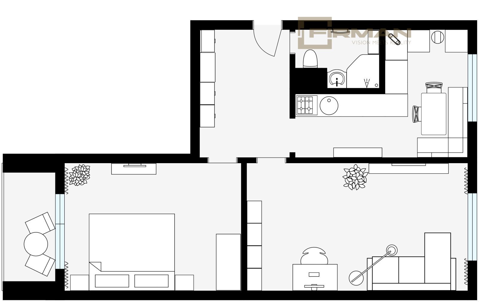 - Dispozice bytu: 2+1