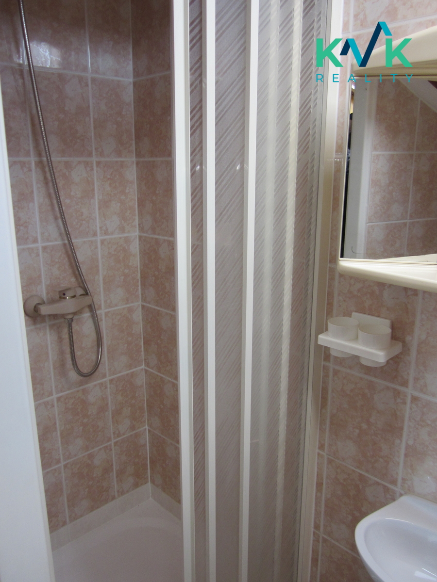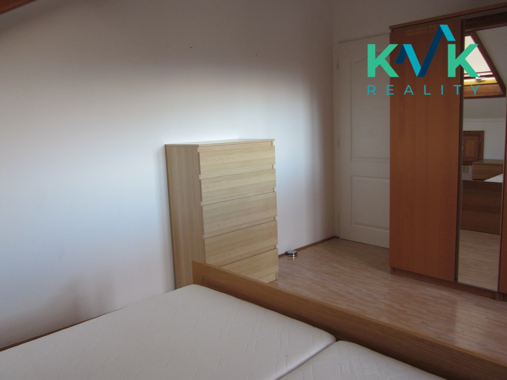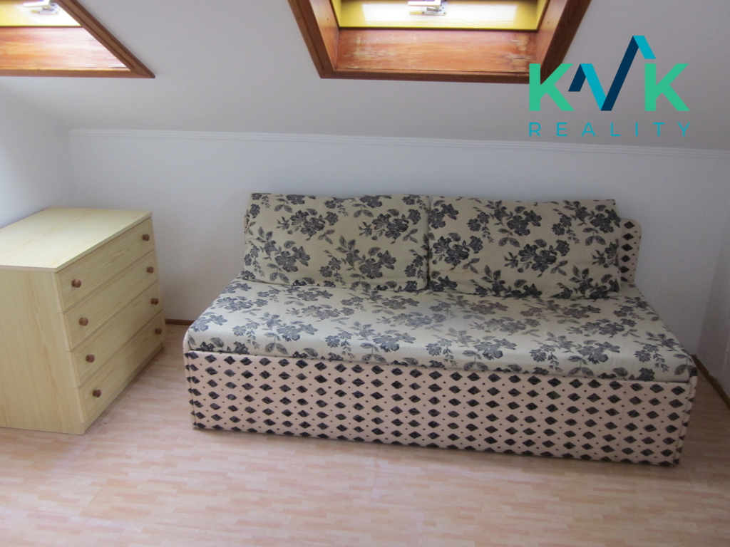 Nabízíme k pronájmu prostorný, velmi krásný a čistý byt 3 + 1 o velikosti 90 m² v Karlových Varech - Bohaticích. Byt je volný, pronájem možný ihned . Velmi udržovaný a světlý byt v podkroví ve 2. patře moderního domu s parkovacím místem v oploceném areálu domu, s posuvnou bránou na dálkové ovládání. Ve velké a vkusně řešené kuchyni se nachází plně vybavená kuchyňská linka, včetně nádobí, porcelánu, skla, a příborů. Součástí linky jsou vestavěné spotřebiče, lednice, mrazák, sporák se sklokeramickou deskou, mikrovlnka, varná konvice. Dále je součástí bytu prostorná koupelna s podlahovým topením, rohovou vanou, umyvadlem a WC. Zde je položena dlažba. V obývacím pokoji je sedačka, stolek a rustikalové skříně. V ložnici je dvojlůžko, noční stolky a úložné skříně. Pokojík je malý, specifický, jeho součástí je malá koupelna, která obsahuje WC, sprchový kout a umyvadélko. Pokojík má psací stůl a rozkládací pohovku. Byt je plně vybaven. Mimo televize. Je zde připojení na Wifi. Vytápění a ohřev vody na topení zajišťuje plynová kotelna v domě. Vhodný pro 2 dospělé osoby a jedno odrostlejší dítě. Požadované měsíční nájemné činí 10 500,- Kč + zálohy na služby, vč. záloh na elektrickou energii a plyn jsou 6 500,- Kč , v ceně služeb je poskytováno parkovací místo přímo u domu, uvnitř oploceného areálu, odvoz odpadu, úklid společných prostor, správa budovy atd.. Vratná kauce ve výši 2 měsíčních nájmů ( 21 000,- Kč ) + poplatek RK ve výši 10 000,- Kč. K dispozici - volný od 1.5.2026.