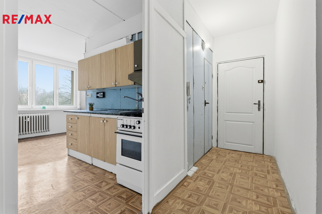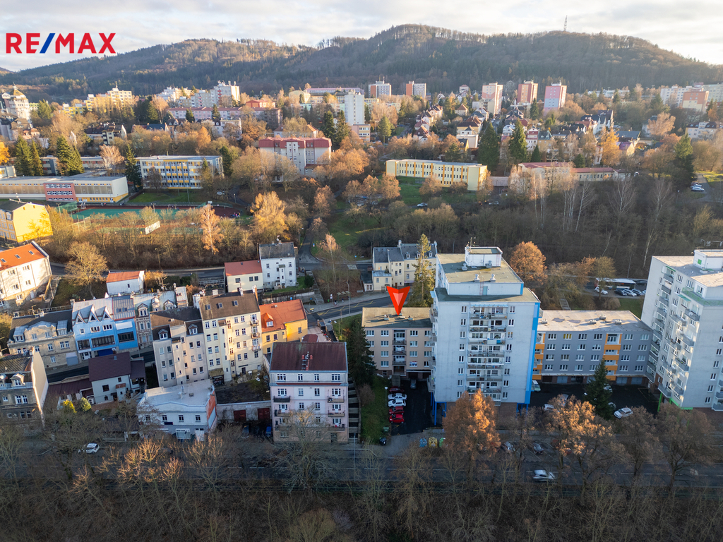 Byt se nachází v přízemí panelového domu z roku 1980, který prošel rozsáhlou revitalizací – zateplením, modernizací klíčových prvků a instalací výtahu. Dům je situován lehce uvnitř vnitrobloku, což zajišťuje klid a minimální ruch z ulice. Před domem je k dispozici menší parkoviště pro obyvatele, další místa lze pohodlně najít v přilehlé ulici. Obyvatelé domu dbají na pořádek ve společných prostorách a dlouhodobě udržují dům v dobrém stavu.