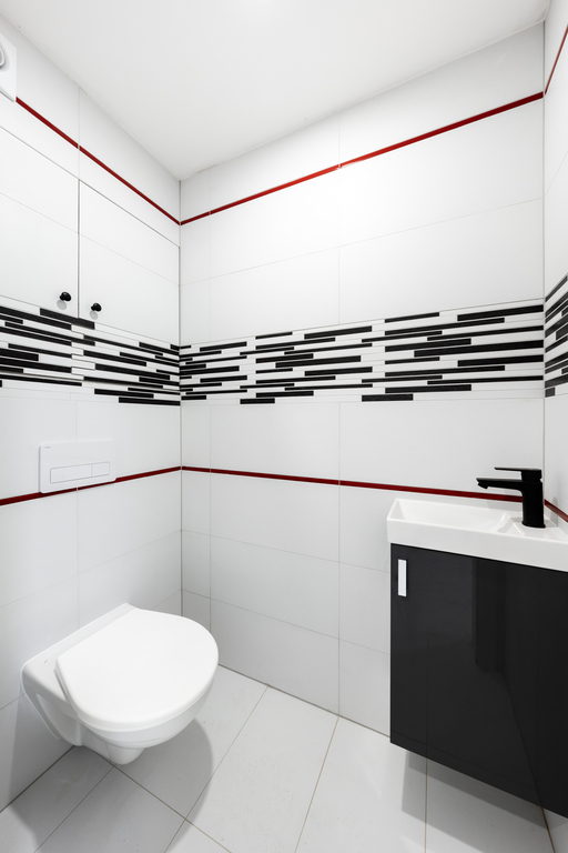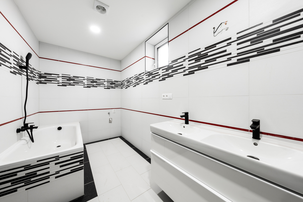 Byt je dokončen v nadstandardním provedení, které zahrnuje kompletní vnitřní rozvody a instalace, plastová okna s izolačním trojsklem doplněná o venkovní žaluzie, podlahové teplovodní vytápění v celém bytě, v koupelně navíc rozšířené o topný žebřík. Interiér doplňují moderní interiérové dveře se zárubněmi, vinylové podlahy v kombinaci s keramickou dlažbou, stejně jako obklady i sanita od renomovaných výrobců. Pro instalaci kuchyňské linky je připravena kompletní přípojka elektřiny, vody a odpadu. Koupelna je vybavena vanou i sprchovým koutem. Absence klasických radiátorů šetří prostor a umožňuje variabilnější uspořádání nábytku. Teplo i teplá voda jsou dodávány ústředně, přičemž spotřeba je měřena samostatně pro každý byt.