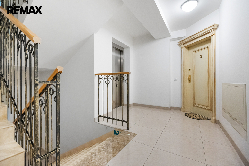 * Vysoké stropy (2,7 m), kvalitní italské materiály a stylový nábytek.