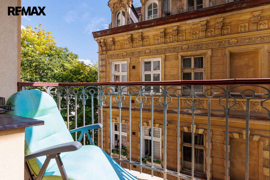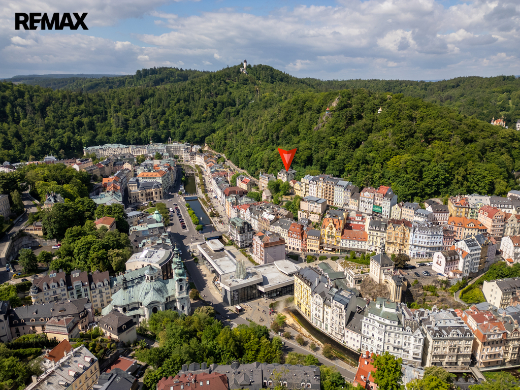 Nachází se ve 3. nadzemním podláží s výtahem a balkonem, jen pár minut chůze od Vřídelní kolonády, obchodů, restaurací i lázeňských pramenů.