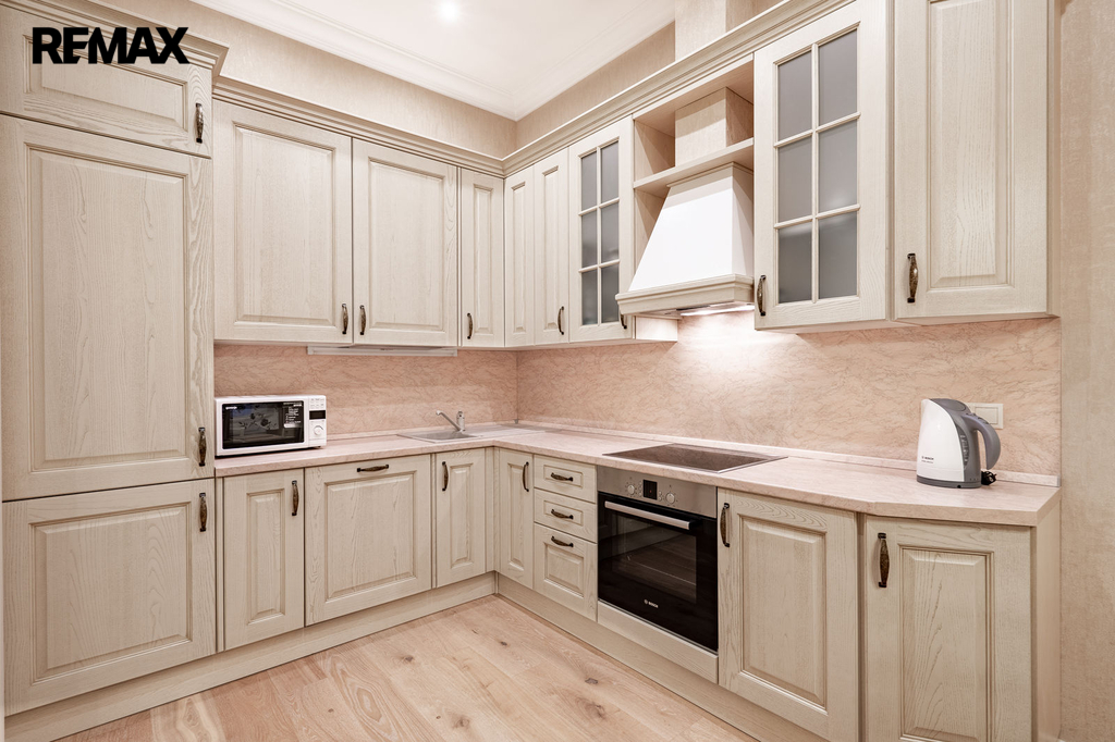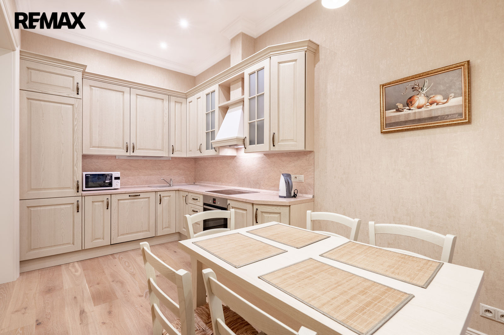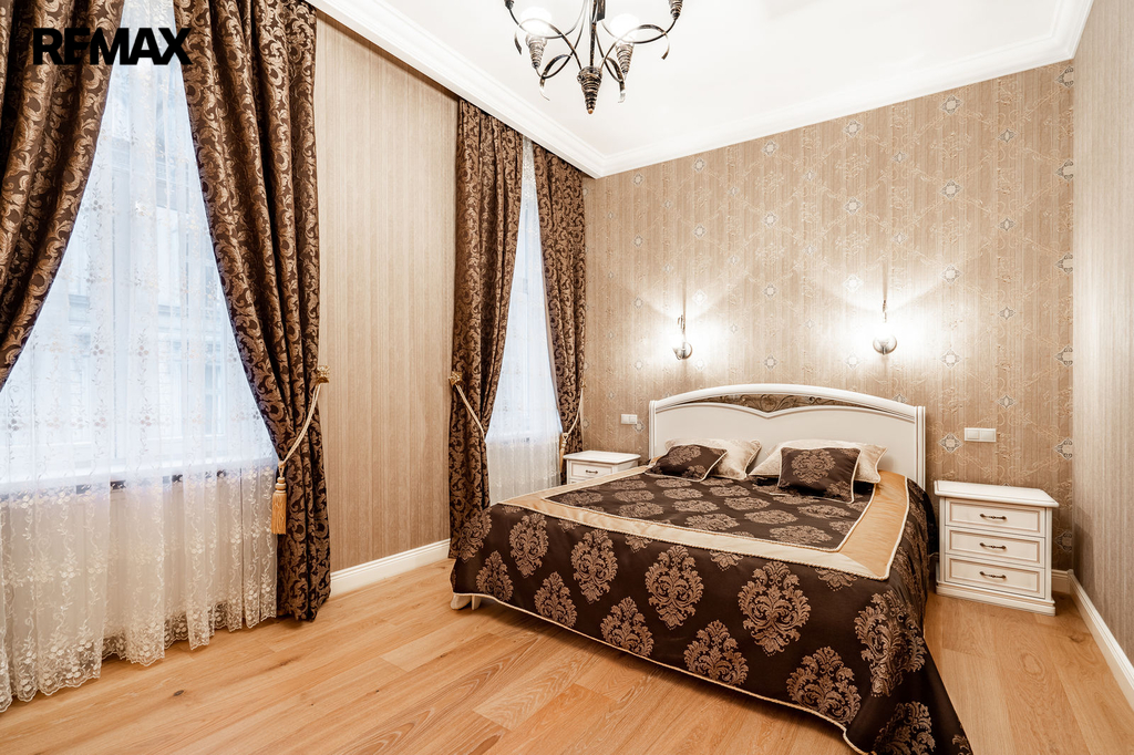 Byt prošel v roce 2016 náročnou a kompletní rekonstrukcí včetně výměny veškerých rozvodů a povrchů. Byly použity pouze kvalitní materiály – mramorová dlažba, dubový laminát, designové tapety a nadstandardní zařizovací předměty. Interiér je navržen v elegantním a nadčasovém stylu.