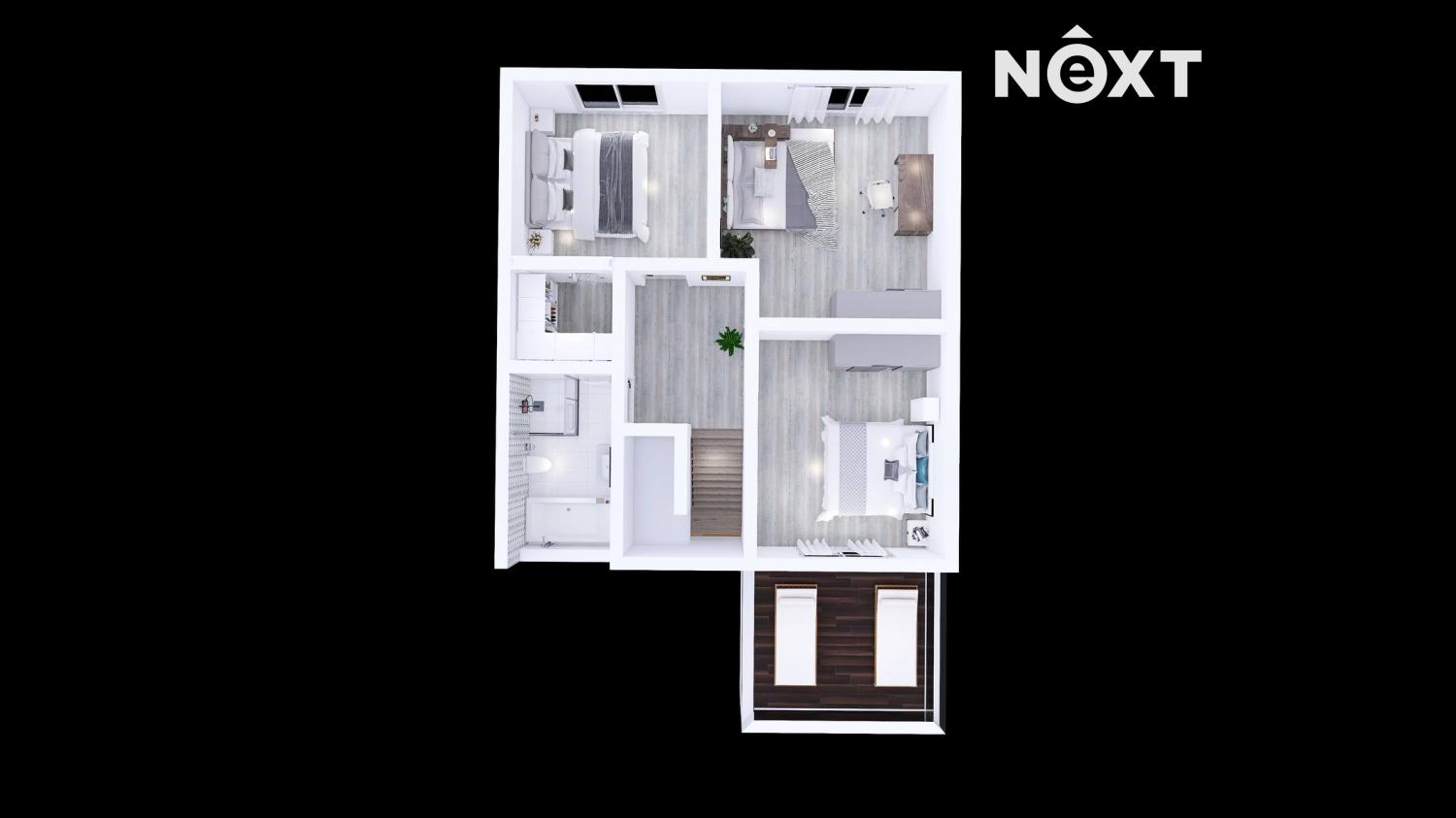 Dispozičně je dům řešen jako 4+kk a včetně garáže má 130 m² užitné plochy. Jako bonus vás čeká také 12 m² velká terasa, na kterou se dostanete z ložnice.