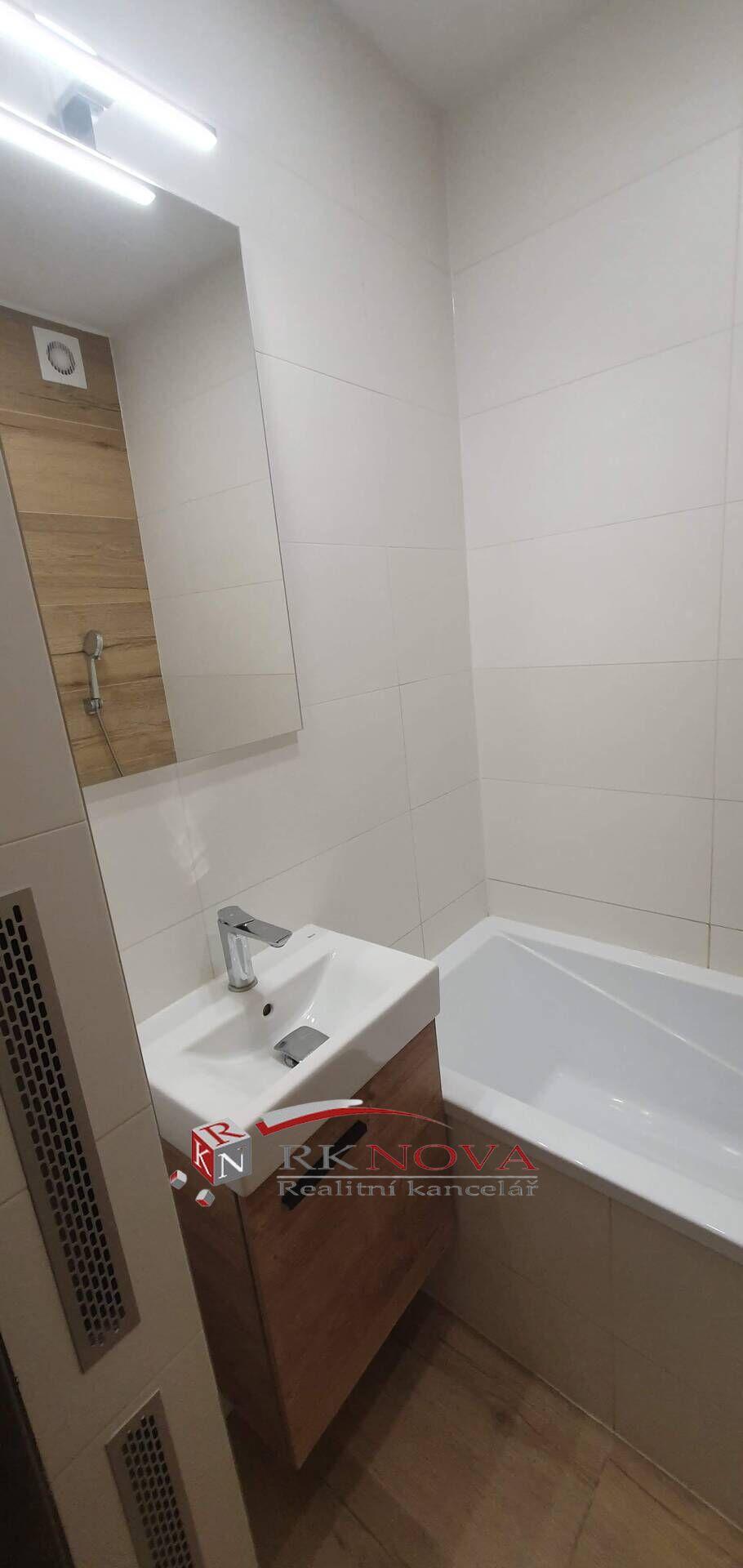 Koupelna po celkové rekonstrukci včetně nové plastové vany, nové umyvadlo s baterií .