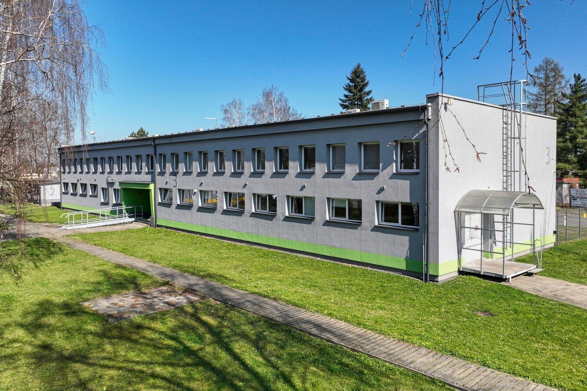 Prostory se nacházejí v I. NP dvoupodlažní zděné budovy s plochou střechou po celkové revitalizaci (zateplení, nová okna, fasáda, bezbariérový přístup, …) interně označená jako B3.