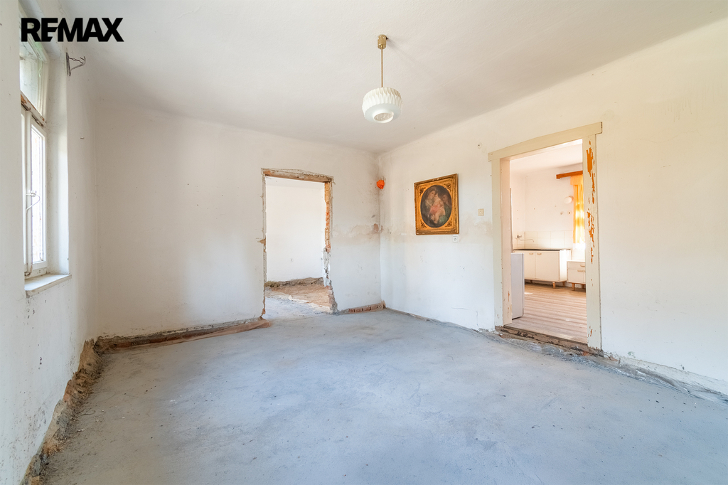 Předmětem prodeje je částečně podsklepený rodinný dům s užitnou plochou cca 93 m2, stojící na pozemku o celkové výměře 959 m2. Aktuální dispozice je 2+1 v přízemí s výměrou 73 m2 + obytná místnost v podkroví 15 m2 + sklep 5 m2.