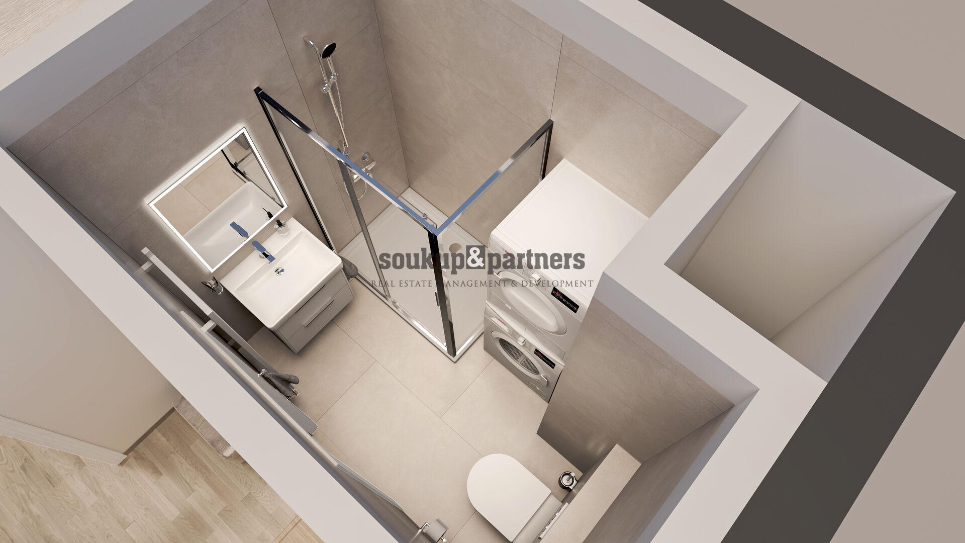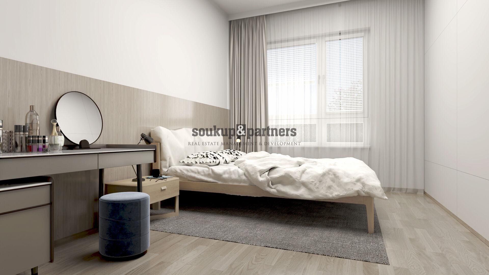 Nový družstevní byt 2+kk - 48 m2 + krajní předzahrádka 28 m2 - projekt PORTTI Kladno.