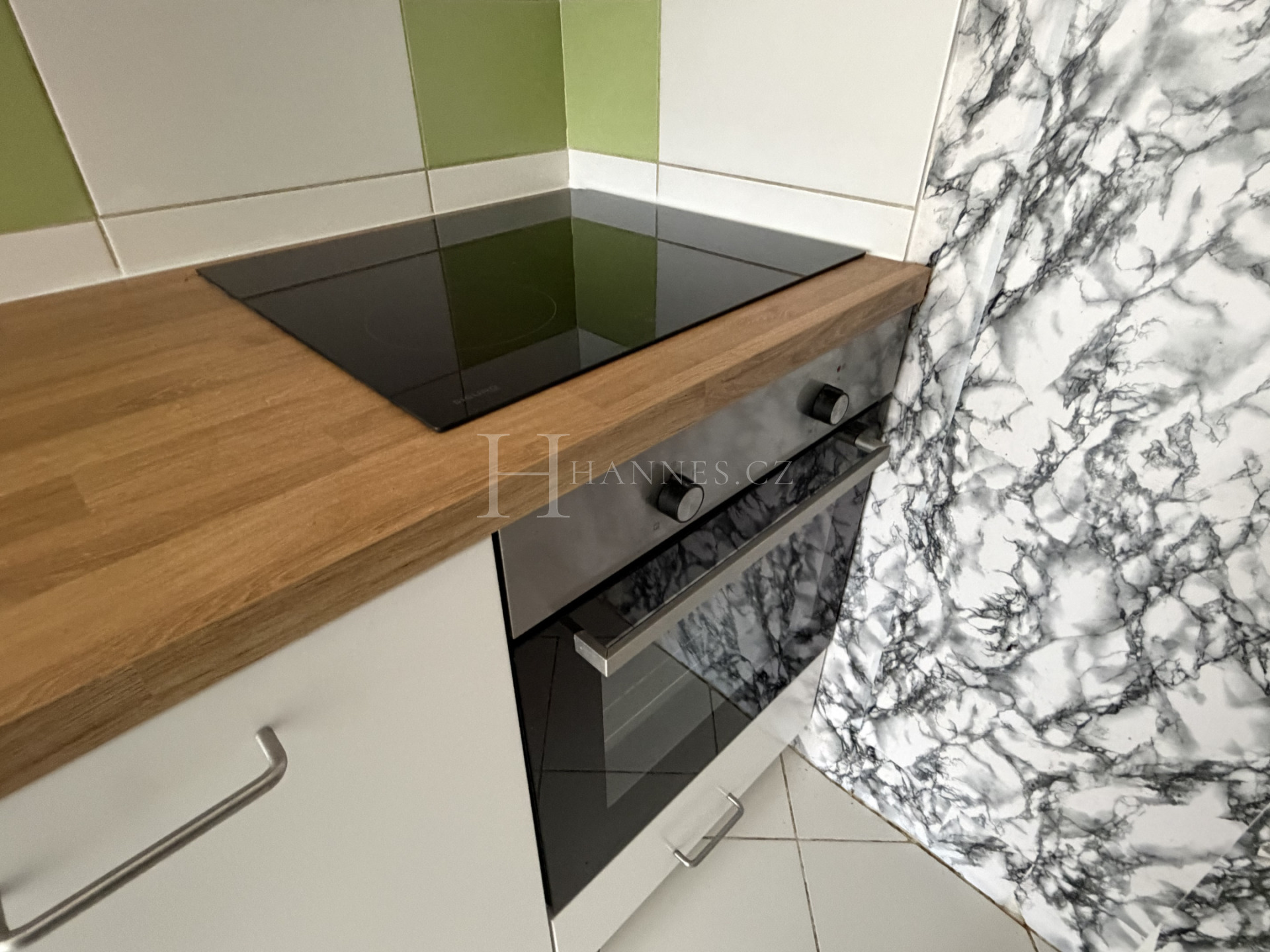 V kuchyni je nová indukční deska, k dispozici je trouba na pečení, myčka nádobí, lednice s mrazákem, pračka.