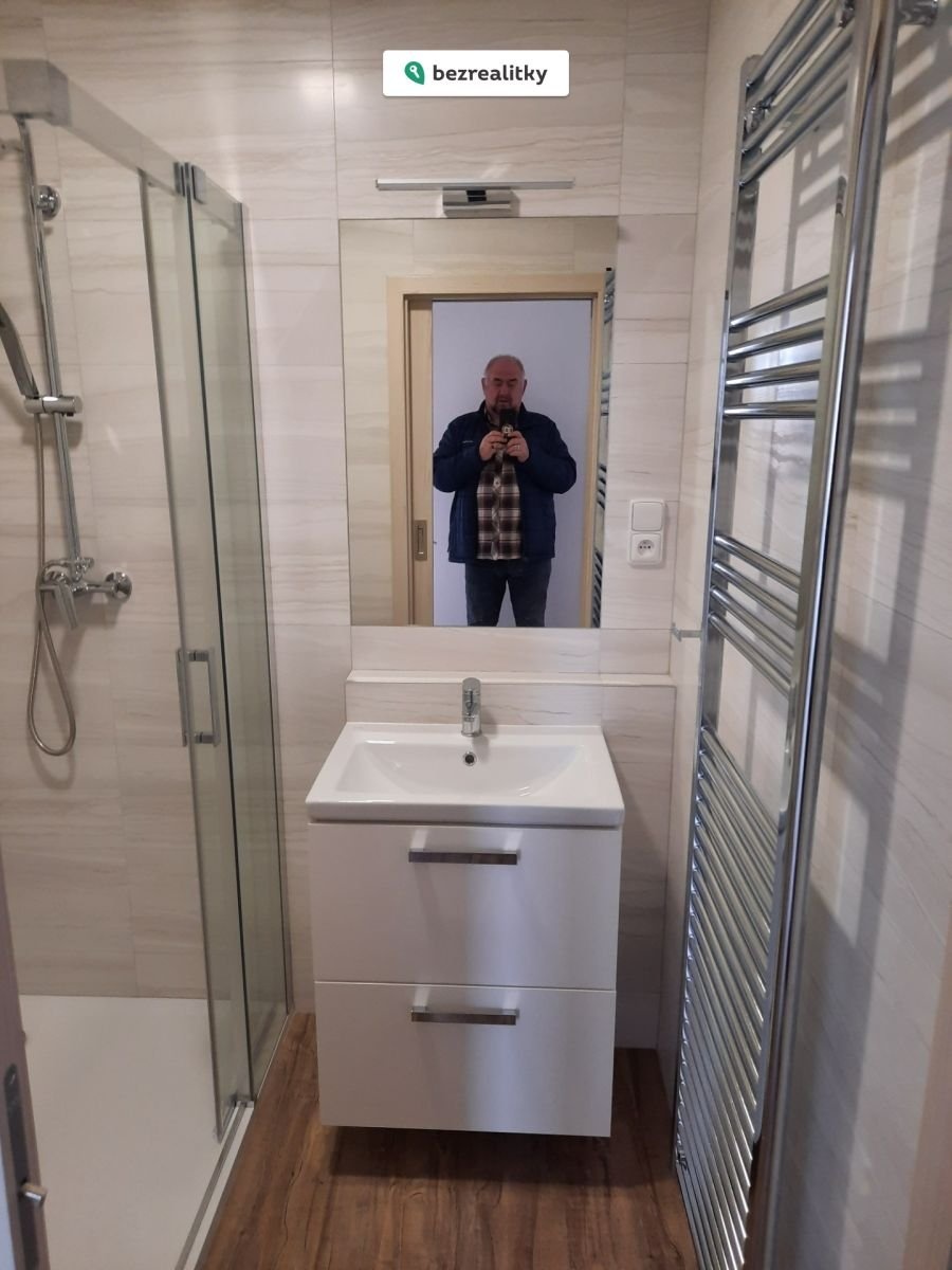 V koupelně je instalován nový sprchový kout, koupelnová skříňka s umyvadlem, zrcadlem a el.topným žebříkem. Osazeny nové dřezové, vanové a sprchové baterie. Ve vnitřní komoře je proveden přívod elektriky, vody a odpadu pro osazenou pračku a sušičku. WC je samostatné, rozšířené a vybavené skříňkou s umyvadlem. V chodbě jsou instalované dvě vestavné šatnové skříně a věšáková odkládací stěna s botníkem. Vstupní dveře do bytu jsou v bezpečnostním provedení včetně rámu. Vnitřní dveře do pokojů jsou celoskleněné a do koupelny a obýváku zasunovací. Na podlaze je položena vinylová plovoucí podlaha. K bytu patří venkovní komora – opravená, vymalovaná s novými dveřmi. Jako přímý majitel garantuji osobní vlastnictví bytu, přičemž interiér reprezentuje moderní řešení a kvalitní zpracování.