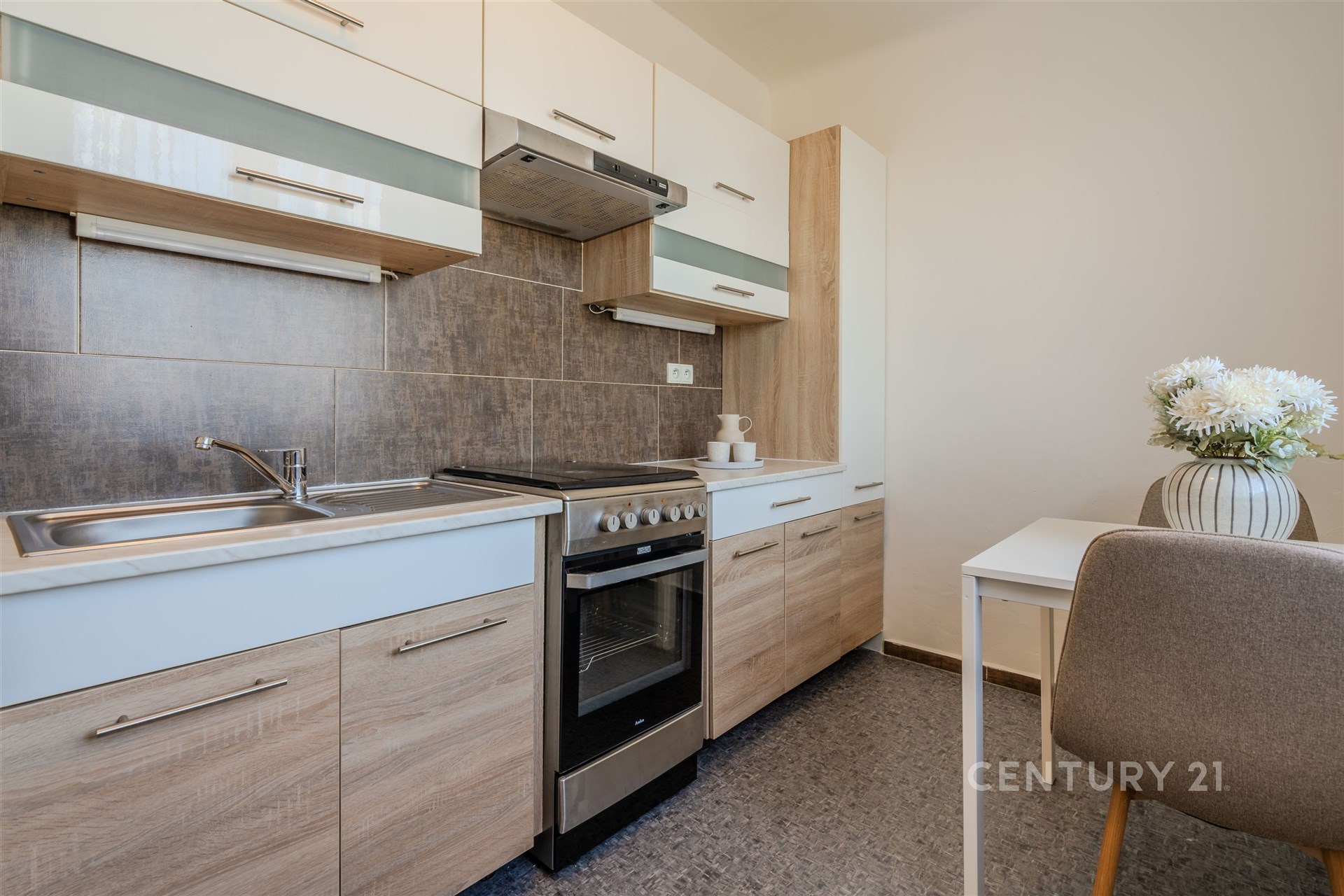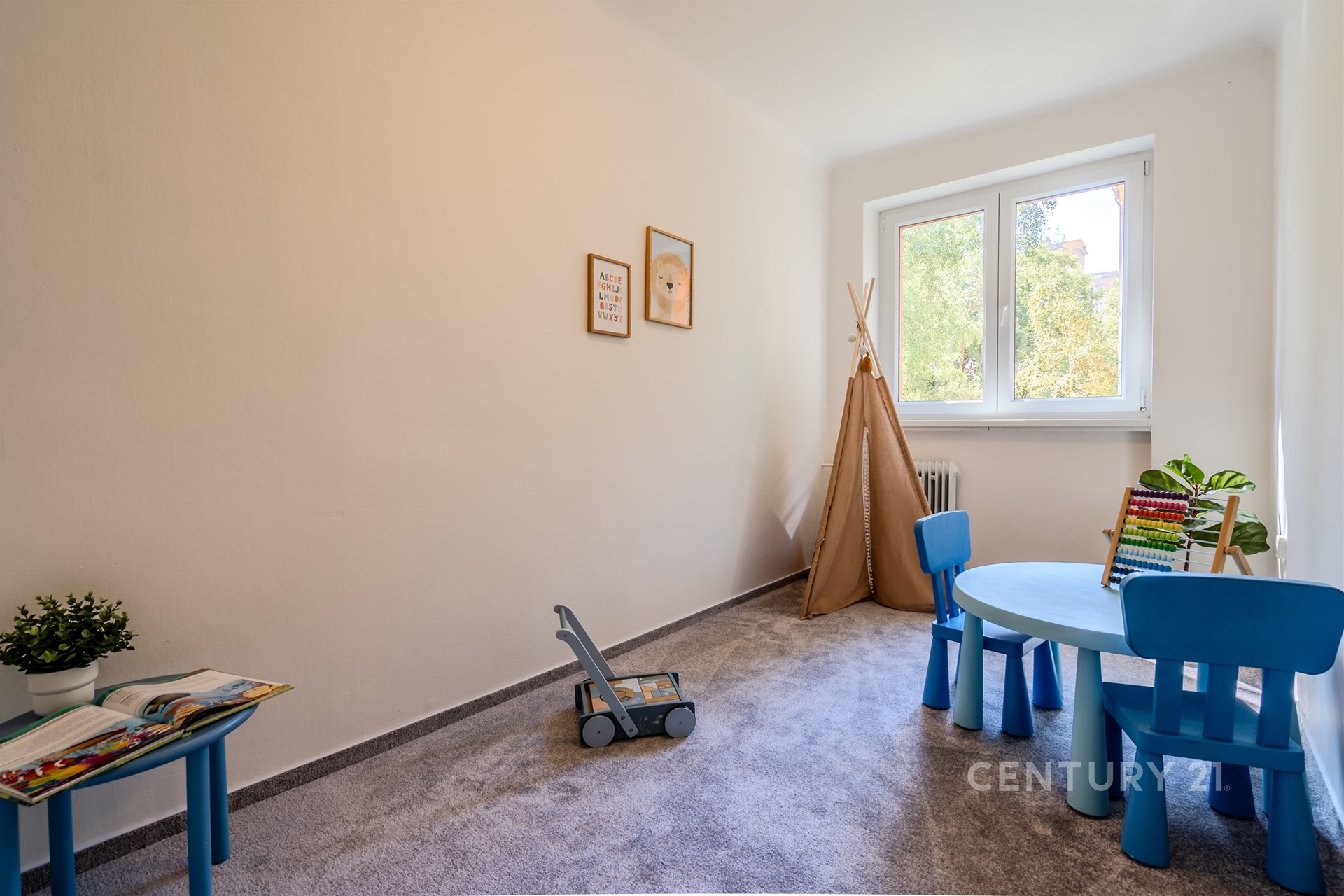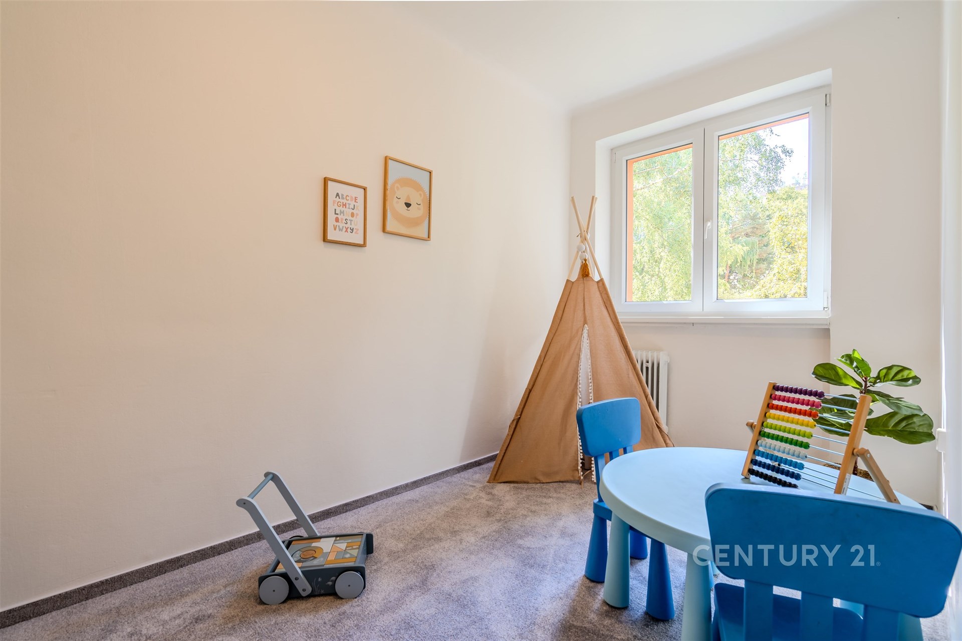 Nabízíme k pronájmu byt 3+1 o užitné ploše 64,7 m², který se nachází ve 2. nadzemním podlaží zatepleného cihlového domu v klidné zástavbě nízkopodlažních budov obklopených zelení. Byt je ve výborném stavu a díky své orientaci působí velmi světlým a příjemným dojmem. Dominantou bytu je prostorný obývací pokoj situovaný na jih s francouzským oknem a vstupem na balkon, z něhož je krásný výhled do klidu se zeleně. Samostatná kuchyň je plně vybavena. Ložnice i dětský pokoj poskytují dostatek prostoru pro pohodlné rodinné bydlení. Praktické je také oddělené WC a koupelna, obě místnosti jsou plně vybavené.
