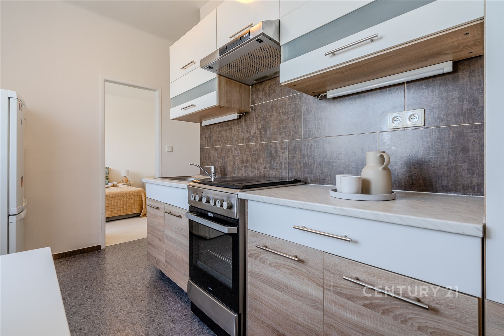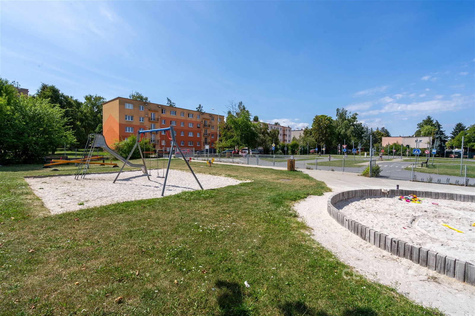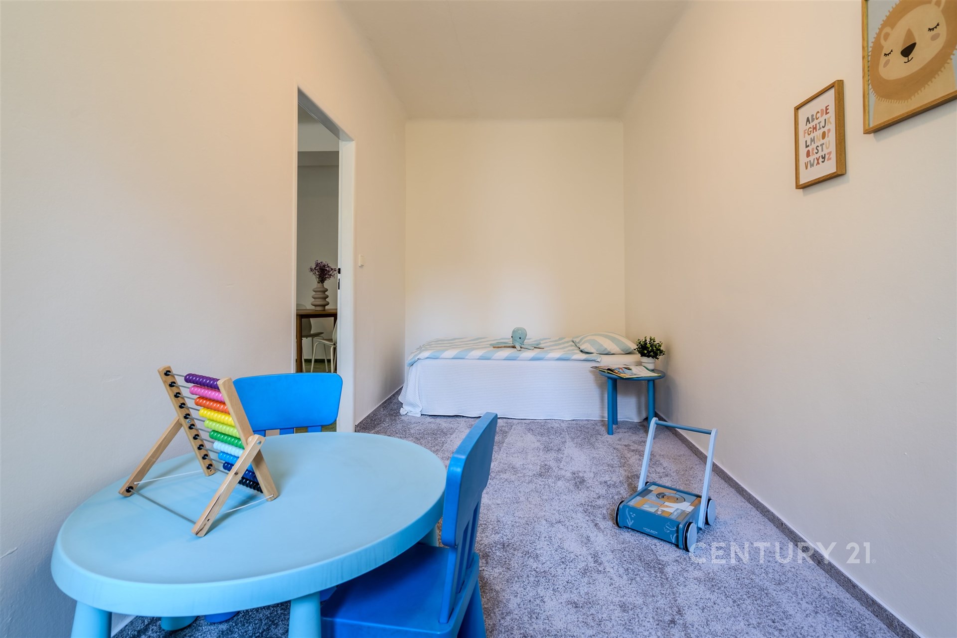 Nabízíme k pronájmu byt 3+1 o užitné ploše 64,7 m², který se nachází ve 2. nadzemním podlaží zatepleného cihlového domu v klidné zástavbě nízkopodlažních budov obklopených zelení. Byt je ve výborném stavu a díky své orientaci působí velmi světlým a příjemným dojmem. Dominantou bytu je prostorný obývací pokoj situovaný na jih s francouzským oknem a vstupem na balkon, z něhož je krásný výhled do klidu se zeleně. Samostatná kuchyň je plně vybavena. Ložnice i dětský pokoj poskytují dostatek prostoru pro pohodlné rodinné bydlení. Praktické je také oddělené WC a koupelna, obě místnosti jsou plně vybavené.