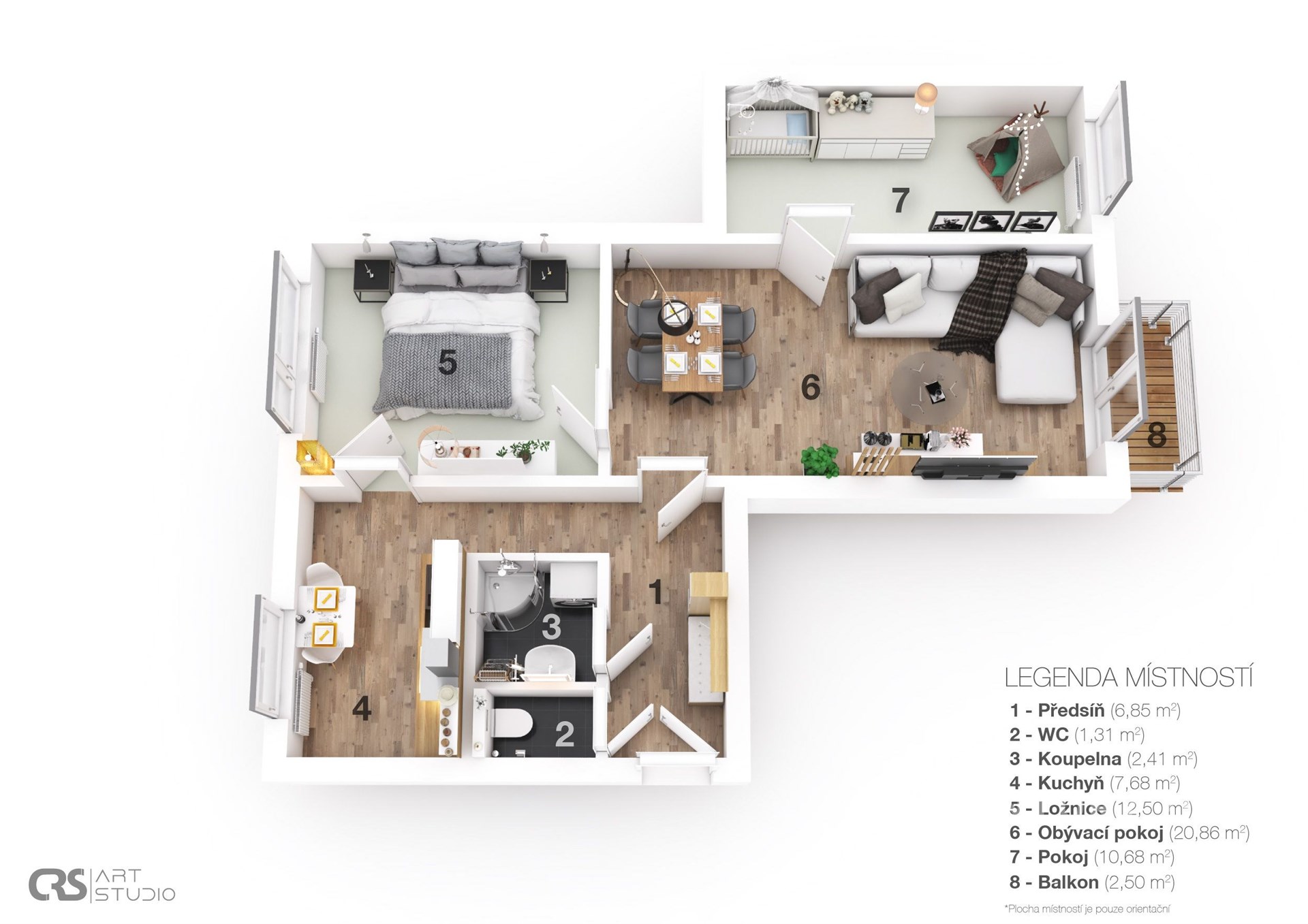 Prostorný a světlý byt s balkonem, příroda i centrum na dosah.