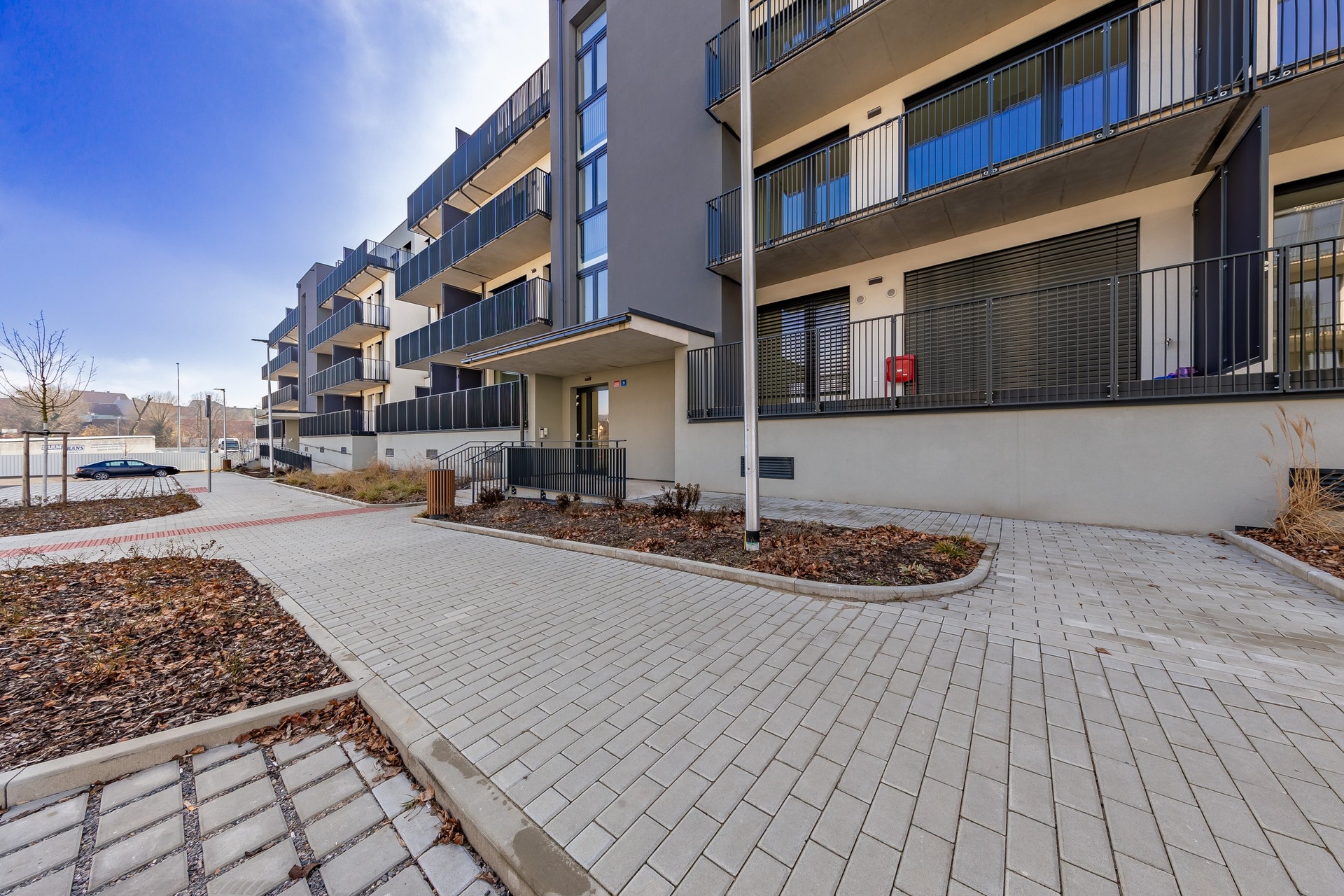 K bytu náleží venkovní parkovací stání a sklepní kóje. Dům je vybaven výtahem. Moderní projekt zajišťuje komfortní a úsporné bydlení.
