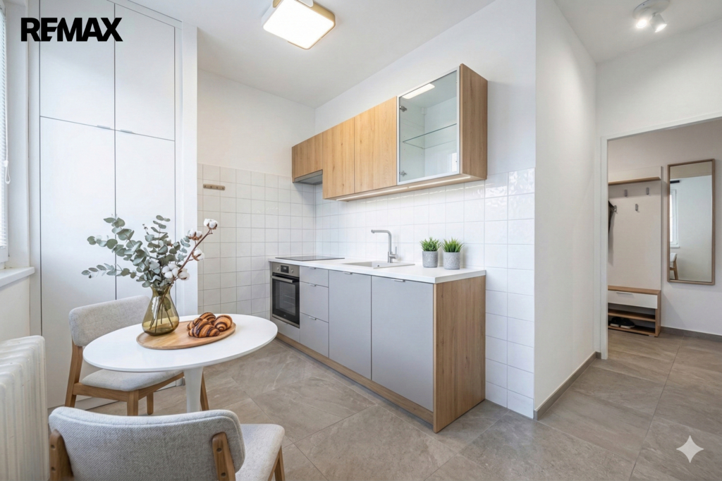 V galerii naleznete pro lepší představu o potenciálu bytu vizualizace obývacího pokoje, ložnice a kuchyně, které jsou pro snadné srovnání vždy následovány fotografií aktuálního stavu.