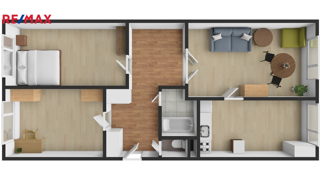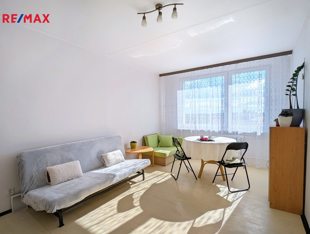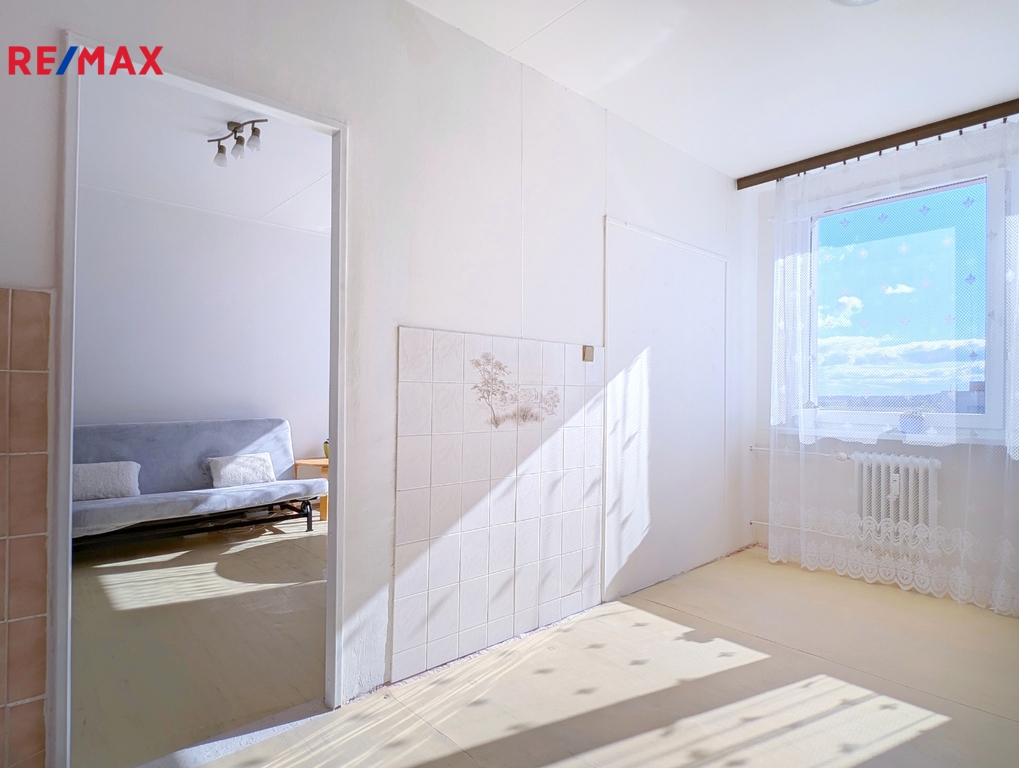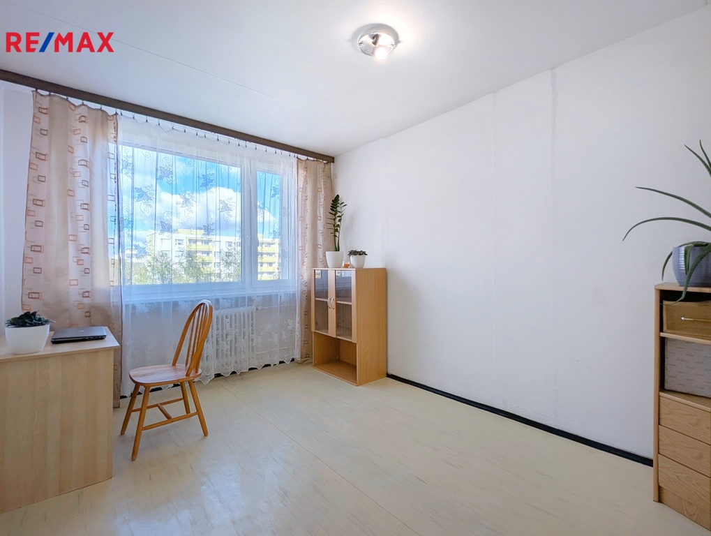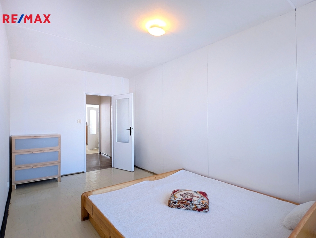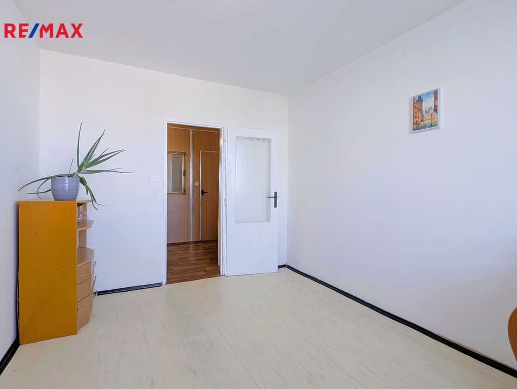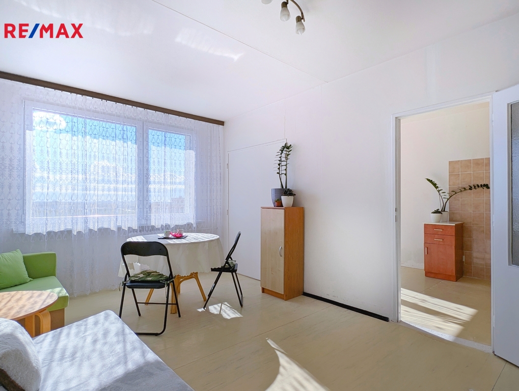 Dispozice bytu je velmi praktická – obývací pokoj s kuchyní je orientován na jih a díky tomu je prostor krásně prosvětlený po celý den. Dvě samostatné ložnice směřují na sever. Uprostřed nalezneme předsíň, která nabízí dostatek úložného prostoru. Byt je v udržovaném stavu – umakartové jádro a původní elektrorozvody.