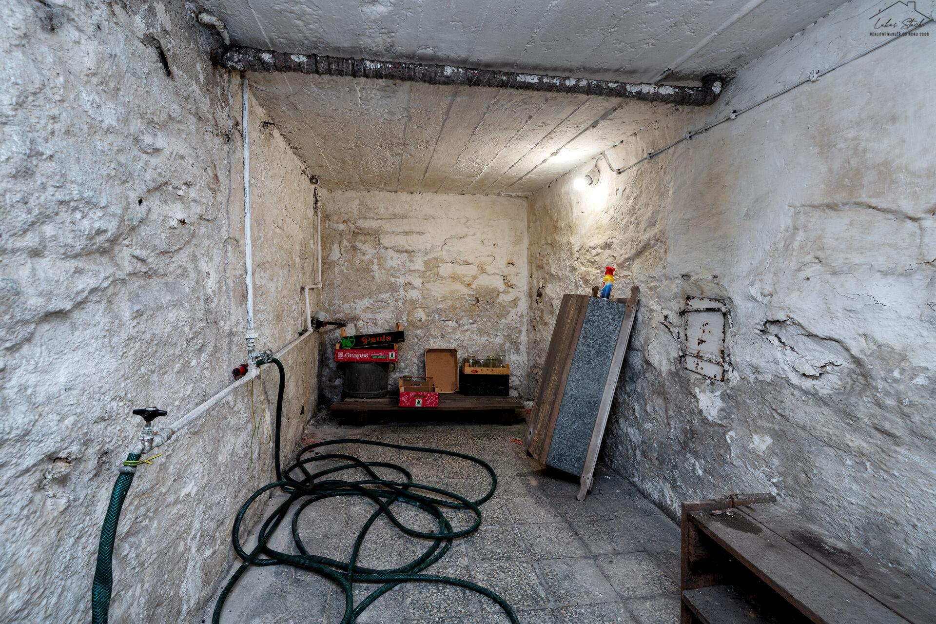 Nechybí ani menší sklep (cca 9 m²), vhodný pro uskladnění trvanlivých potravin, zeleniny a zavařenin.