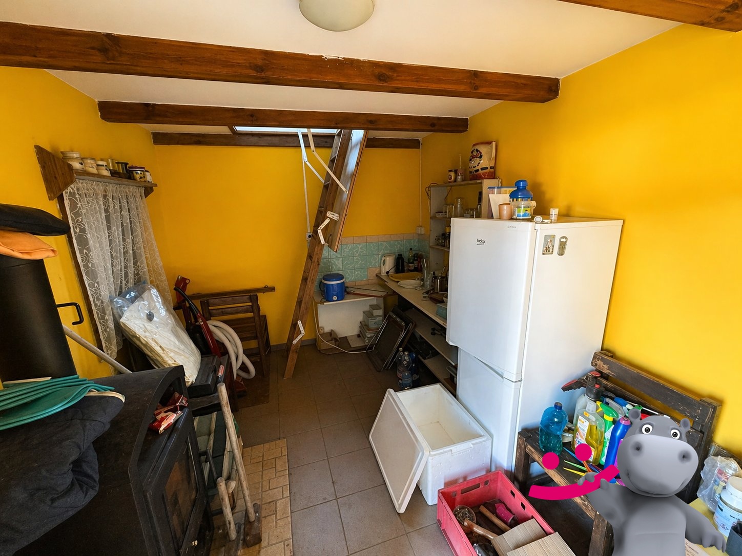 • Funkční dispozice 3v1 – obytné přízemí s kuchyňkou a krbem, vstup na terasu, ložnice v patře + sklep na věci, které nechceš tahat domů