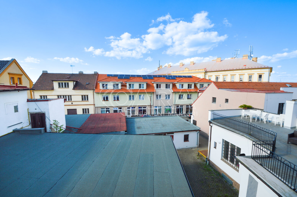 Ekonomicky stabilní nemovitost ve skvělém stavu nabízí čtyři podlaží. V přízemí je prodejna oděvů s plochou 341 m2 a se zázemím 83 m2 nad ní. V prvním patře je kancelář 157 m2 s centrální chodbou, ze které jsou vstupy do čtyř samostatných místností, do kuchyňky a na samostatnou toaletu. V té největší kanceláři je krb. Druhé patro 194 m2 je podobně řešené, jako první s možností přizpůsobit celé patro i k bydlení. Ve třetím patře je zrekonstruovaný prostorný byt 4+1 s výměrou 120 m2. Další prostor vedle bytu je půdní s úložným prostorem a schodištěm do podkroví o ploše 74 m2. Dům je také podsklepený 50 m2. Tento prostor je aktuálně prázdný a lze využít třeba jako skladovací. Celkem se jedná přes 1.000 m² ve skvěle udržovaném domě s novou střechou z roku 2022.