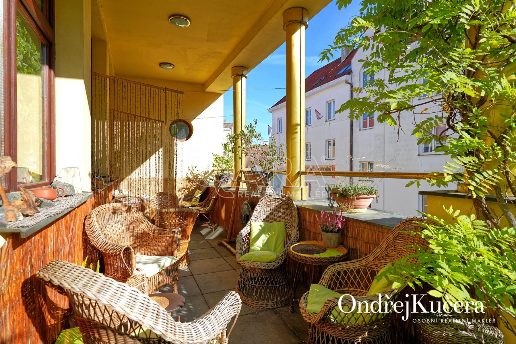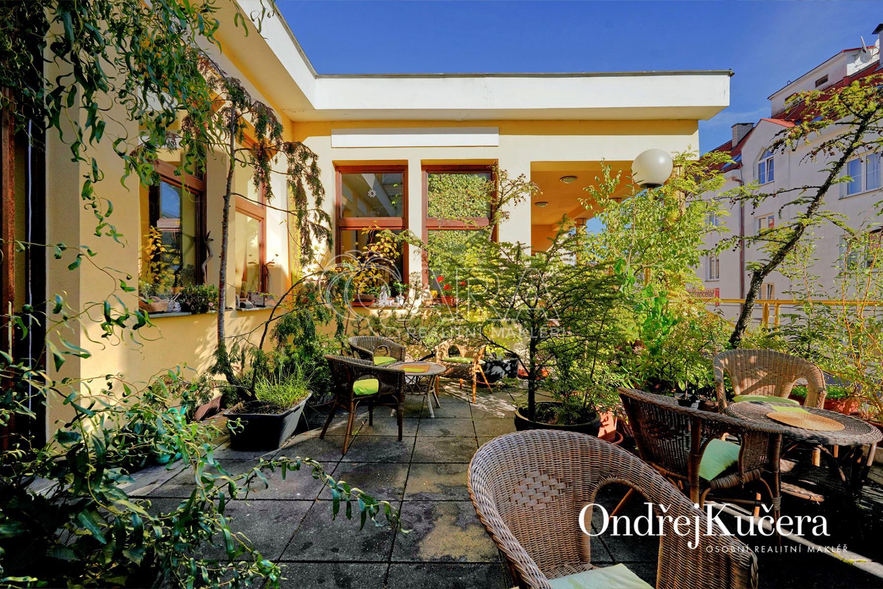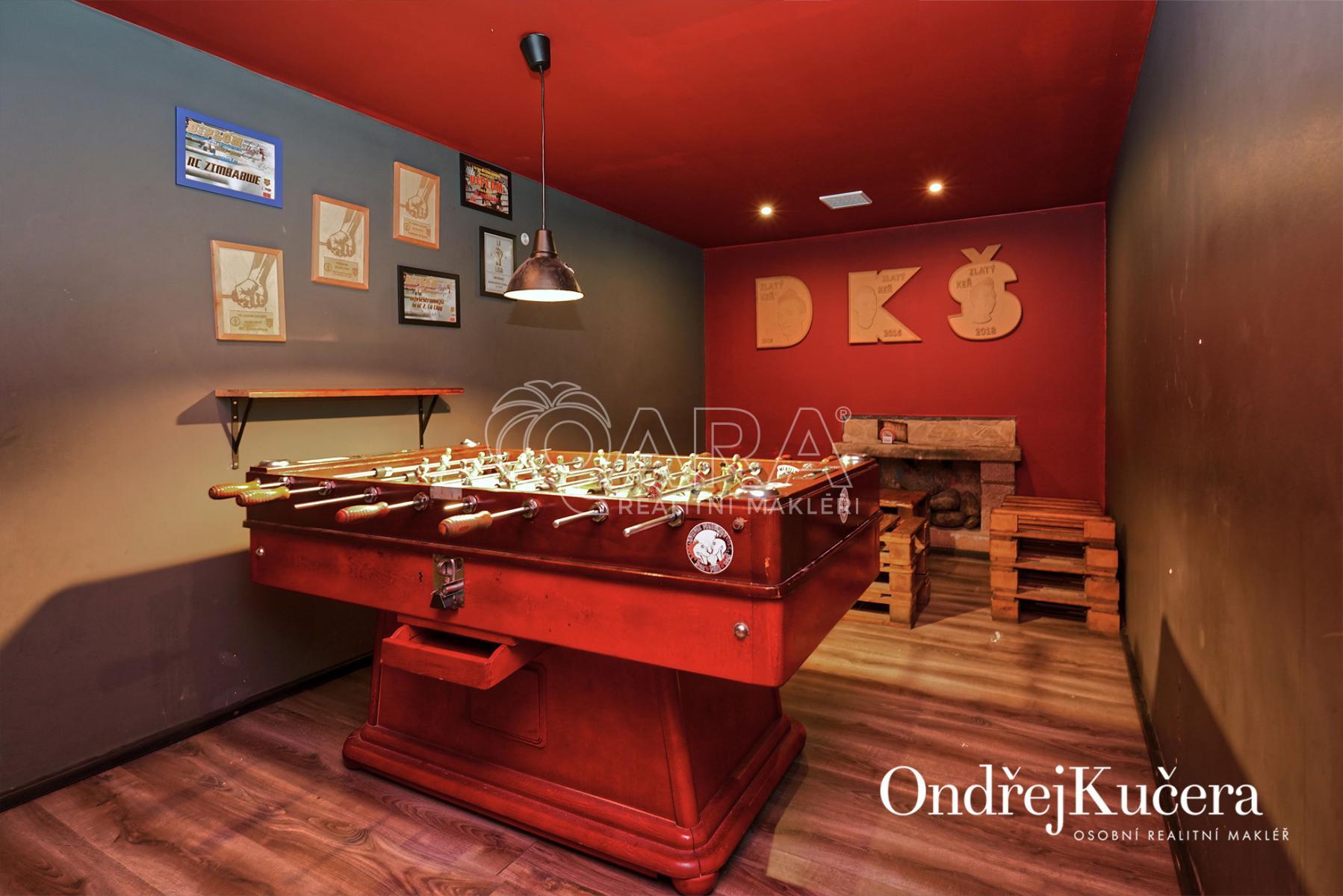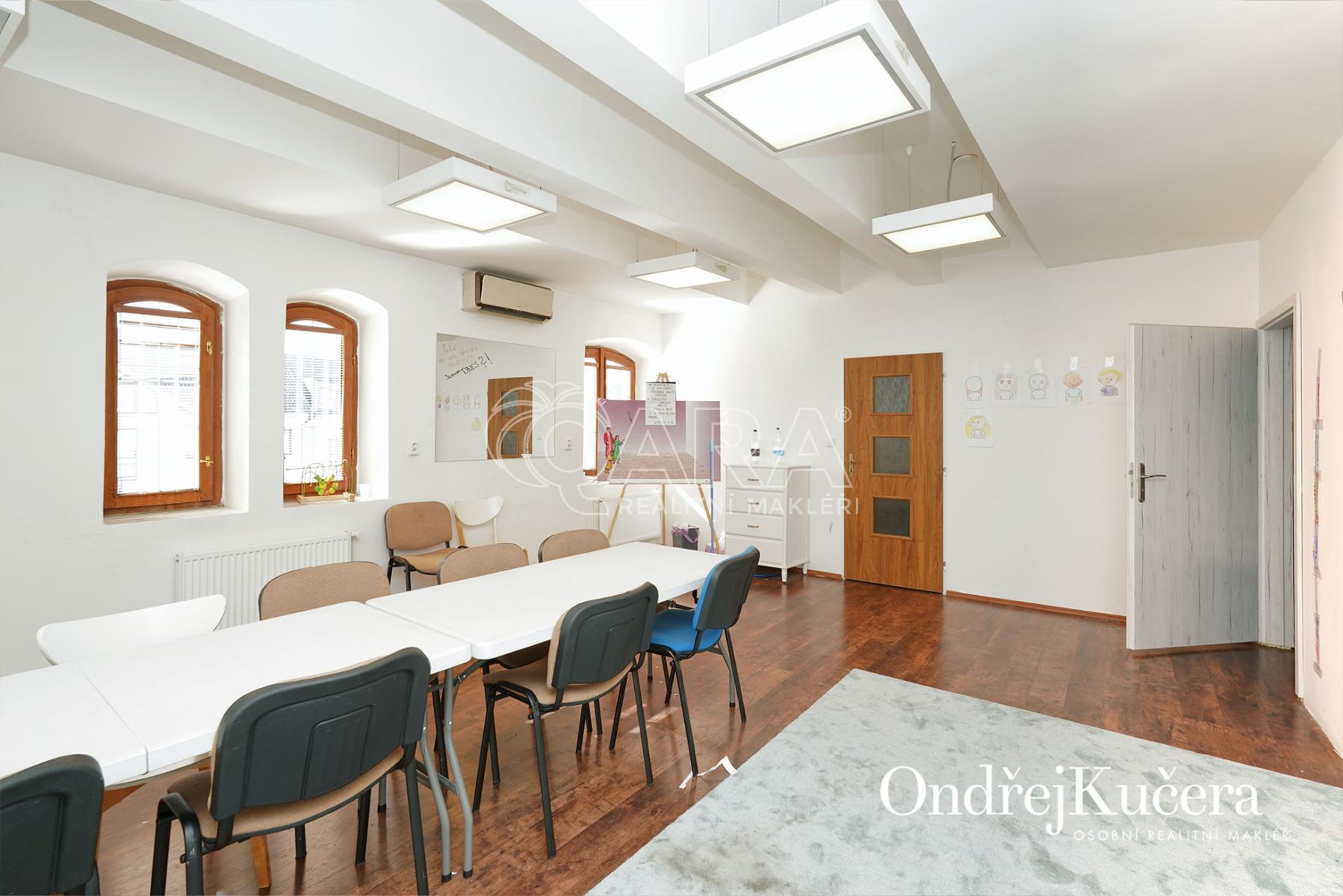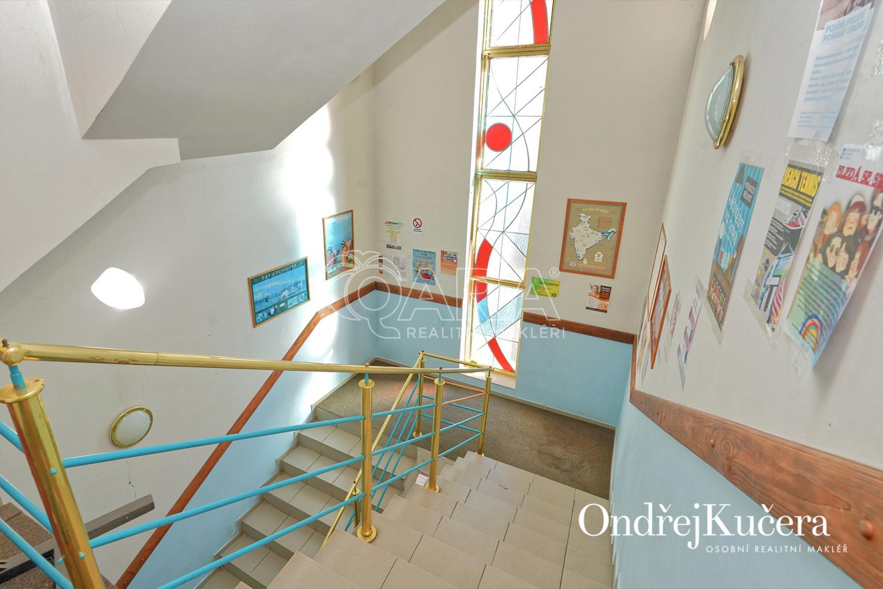 Dům je rozdělen na dvě části. V prvním vchodu se nachází restaurace s potravinami v přízemí. Nad ní je vyhlášená a skvěle hodnocená tradiční čajovna s velkou terasou. V posledním patře je 62 m and sup2; byt 2+kk a půda. Ve druhém vchodu je music bar v suterénu, pole gym a 41 m and sup2; byt v přízemí. V prvním patře je velký sál s točitým schodištěm do druhého patra s učební a zázemím. Ve druhém patře je i 90 m and sup2; byt s dispozicí 3+1. Celkově se jedná přibližně o 1.000 m and sup2; s velmi zajímavým uspořádáním.
