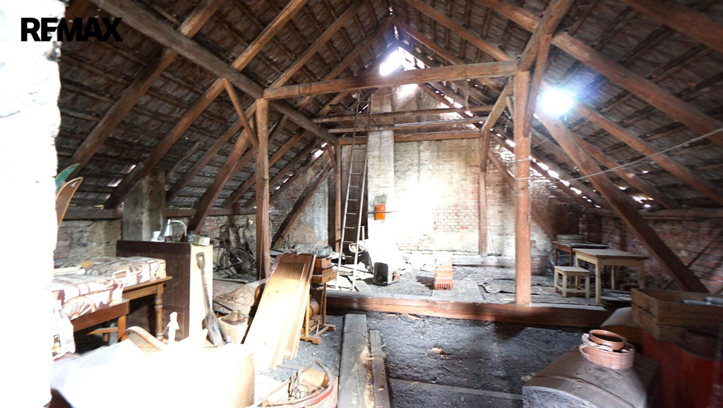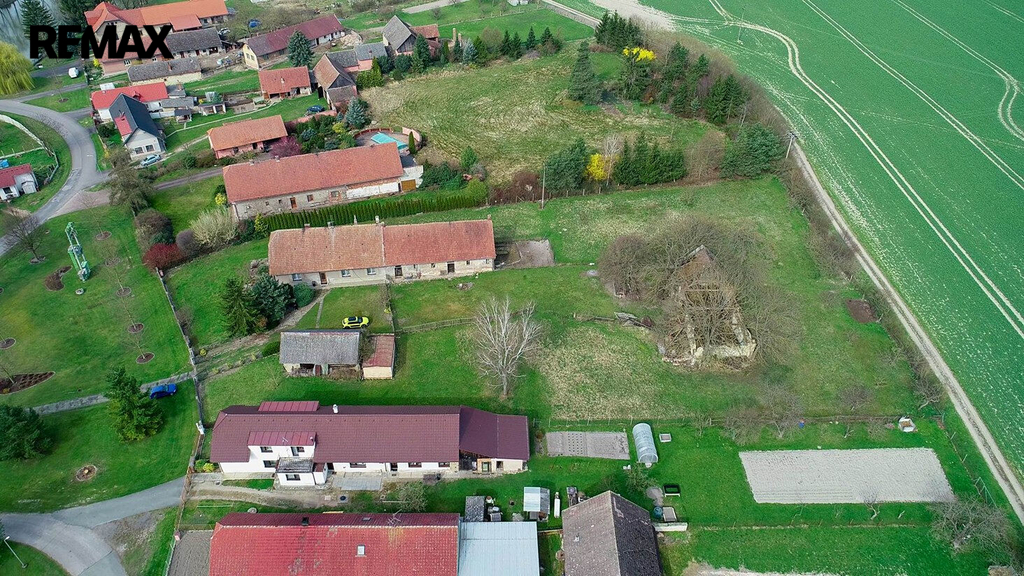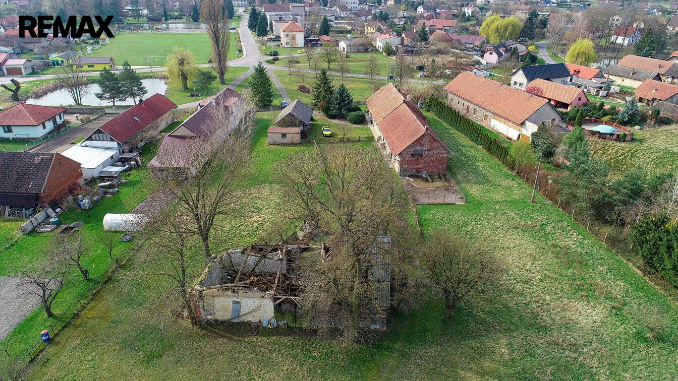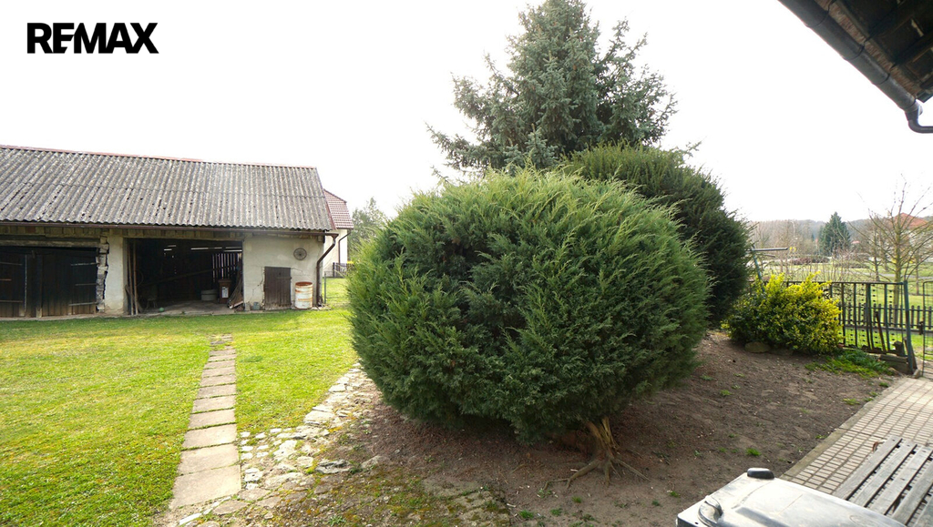 Na hlavní obytnou část navazuje budova bývalého hospodářství. Na protější straně je garáž, dílna, kůlna, atd. Vzadu na pozemku je částečně rozpadlá budova stodoly. Obytná část je v původním stavu, vše je funkční. Velkou výhodou je, že na pozemek je možné přijet nejen zepředu, ale také ze zadní strany parcel.