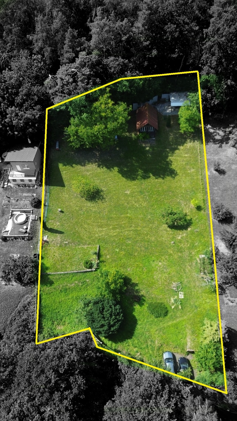 Díky své velikosti nabízí pozemek výjimečný potenciál