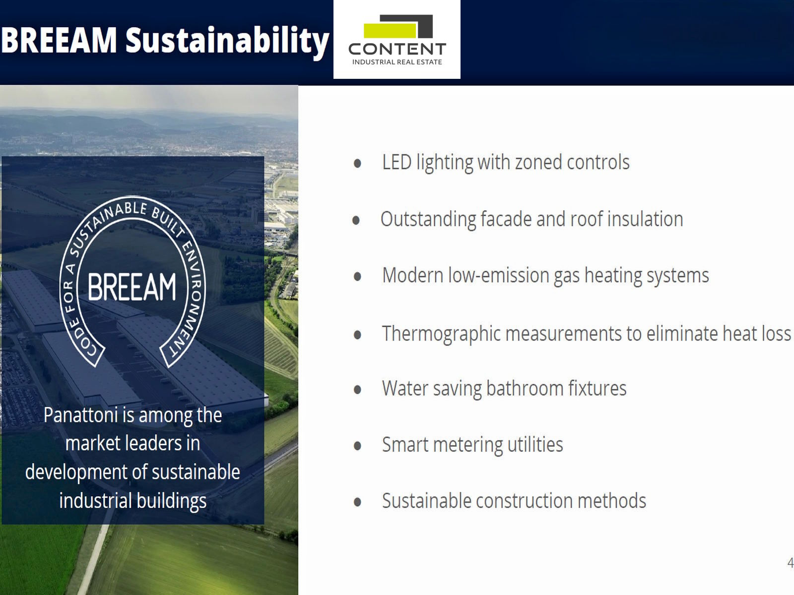 - moderní, úsporná budova s certifikátem udržitelnosti BREEAM,