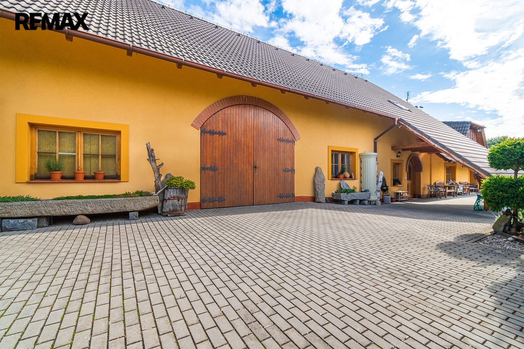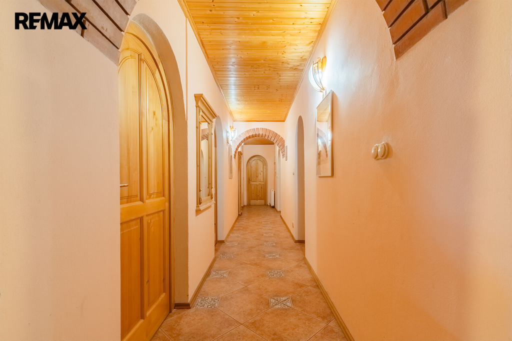 Pozemek 3163 m2 a užitná plocha 304 m2. Dostatek soukromí zajišťuje vzrostlá zahrada společně se živým plotem a vjezdová brána s elektrickým pohonem.