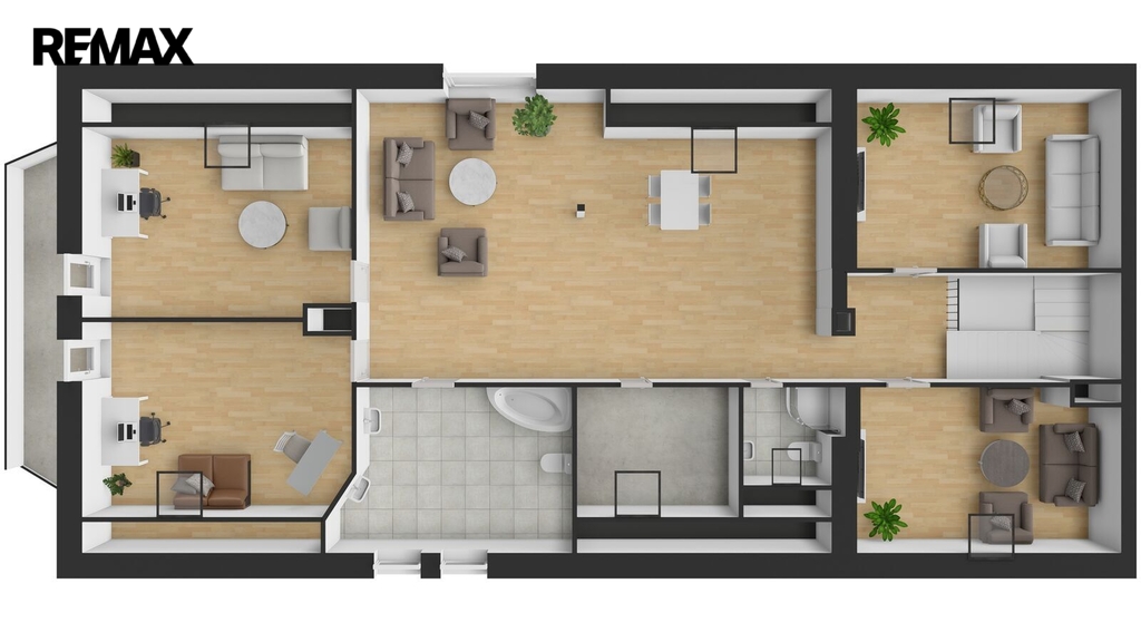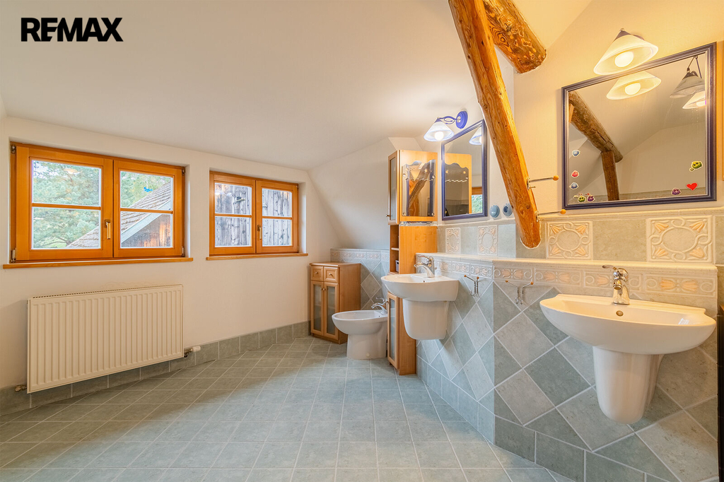 V 2.NP se nachází 4 prostorné pokoje, koupelna s wc a sprchovým koutem, pracovnou a velkou koupelnou s rohovou vanou, přípojkou na pračku, dvojumyvadlem, bidetem a toaletou. V otevřeném prostoru lze vybudovat kuchyňský kout, pro který jsou instalace připraveny.