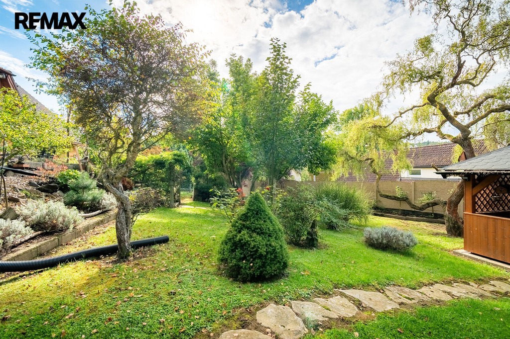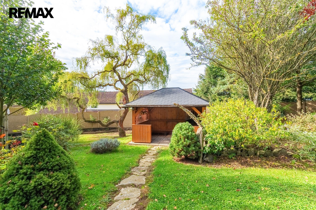Nádherná, vzrostlá zahrada obklopující pozemek vás uchvátí a zajistí naprosté soukromí. Najdeme zde dřevěnou pergolu, kde je možno vybudovat venkovní kuchyň a nabízí tak místo ke grilování a posezení s přáteli.