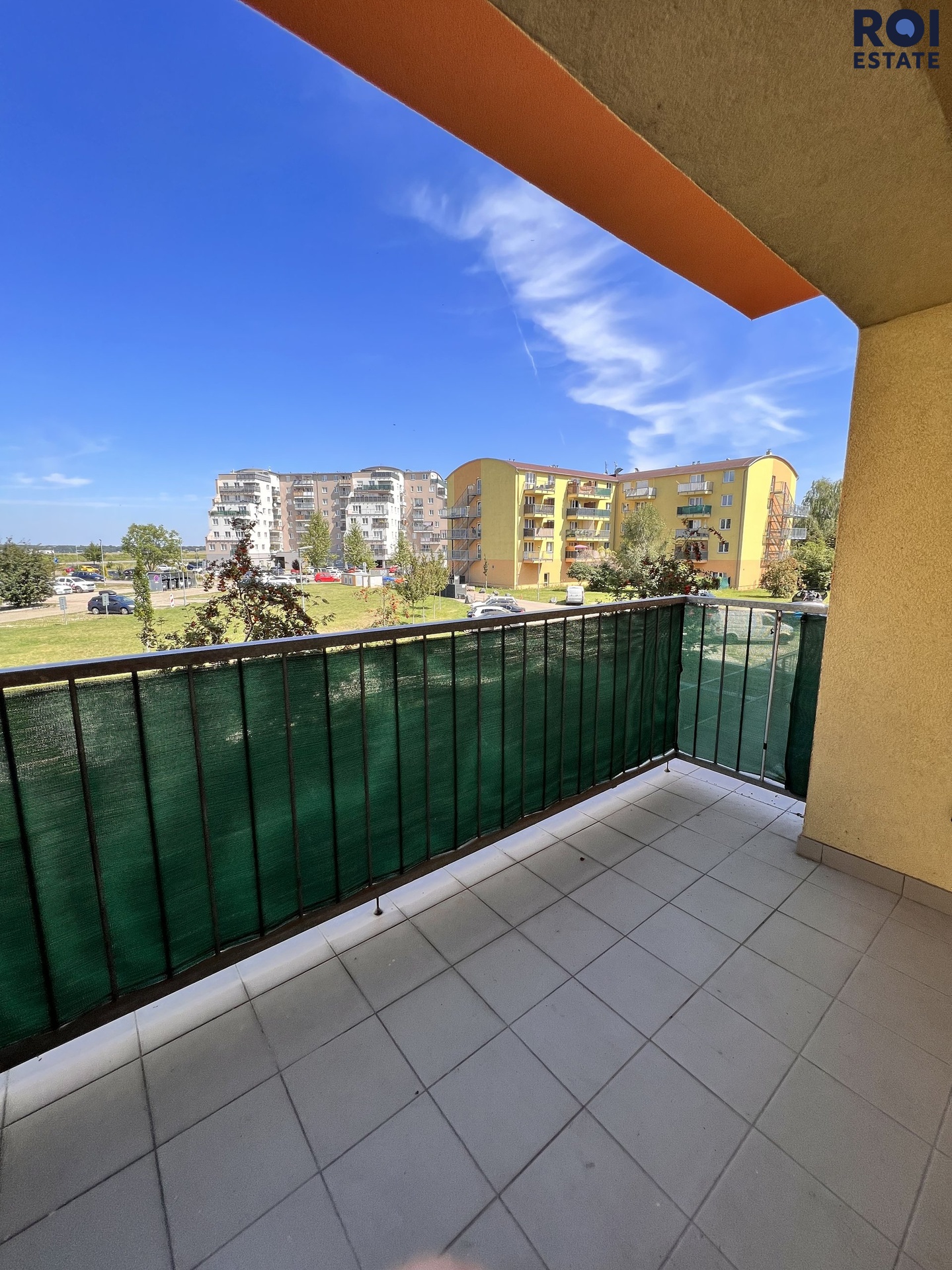 Z obytného pokoje je vstup na balkon orientovaný do klidného prostoru se zelení, který poskytuje příjemné místo pro odpočinek.