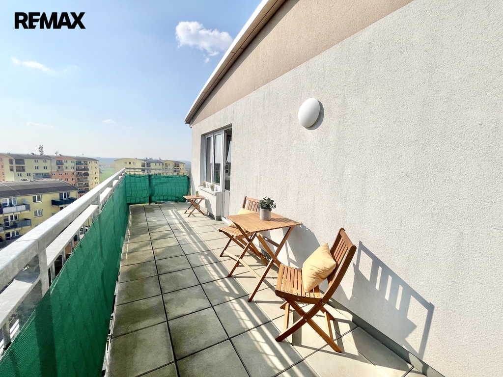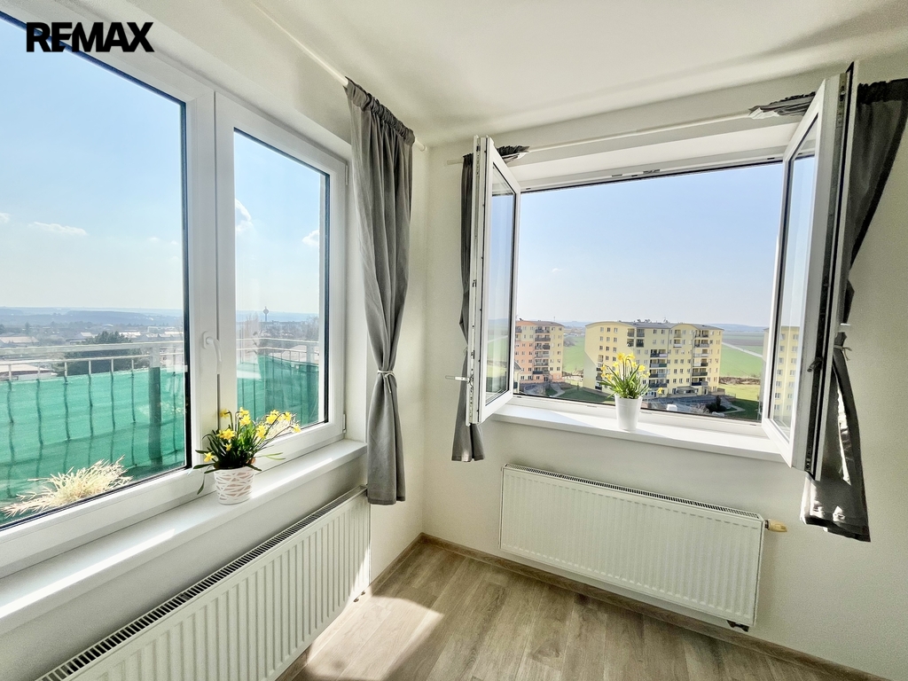 Slunný 2KK s velkou terasou a krásným výhledem, 12 min. na -M- Kobylisy