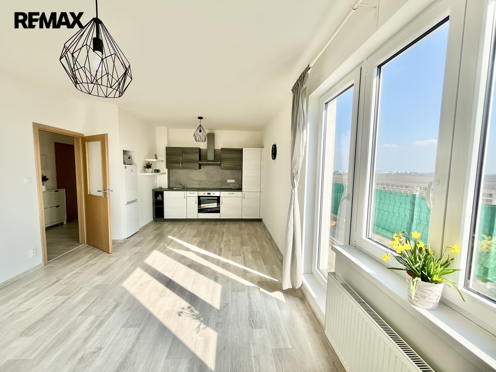 Nabízíme Vám byt se spoustou přirozeného denního světla - 2KK 46m², s 3m² komorou a 14m² terasou s krásným výhledem.
