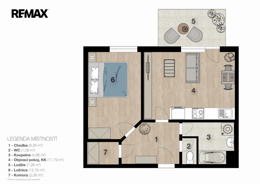 | Dispozice/podlahová plocha: | 2+kk/44 m² |